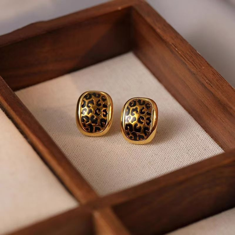 法式气质时尚复古简约几何椭圆豹纹耳钉女个性轻奢百搭耳环批发
