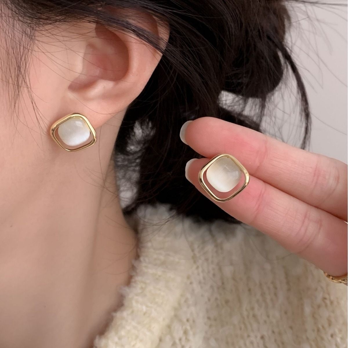 幾何学的な猫の目の石のイヤリングの女性の高級感の軽い贅沢なファッションの気質のイヤリングの個性のシンプルな組み合わせのデザイン感の耳飾り