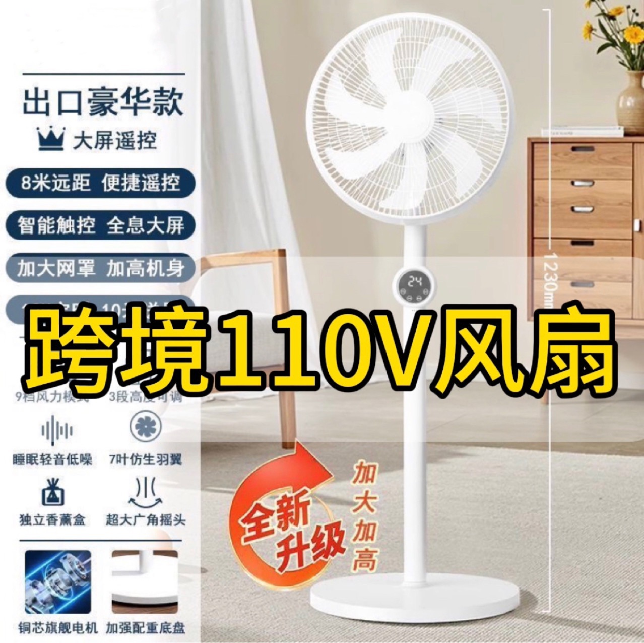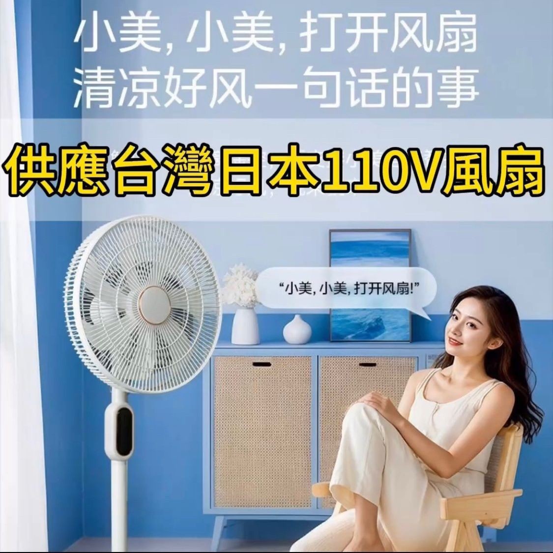跨境110V美规英规欧规台湾电风扇语音落地扇宿舍台立两用静音遥控