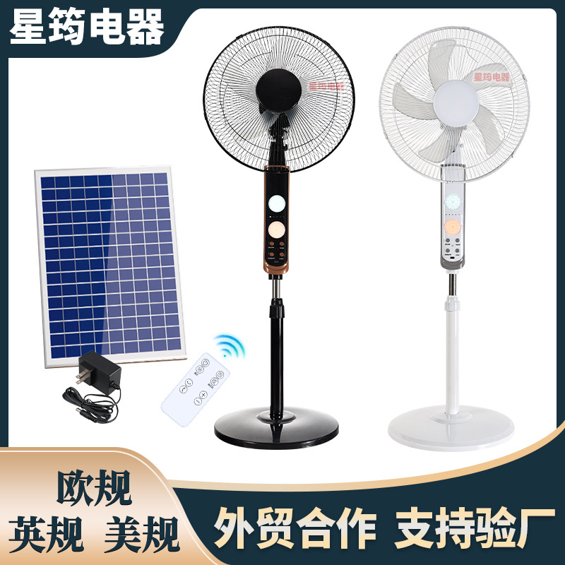16インチソーラーファン大風力充電可能ライト付き静音リモコンフロアファン室内屋外緊急ファン