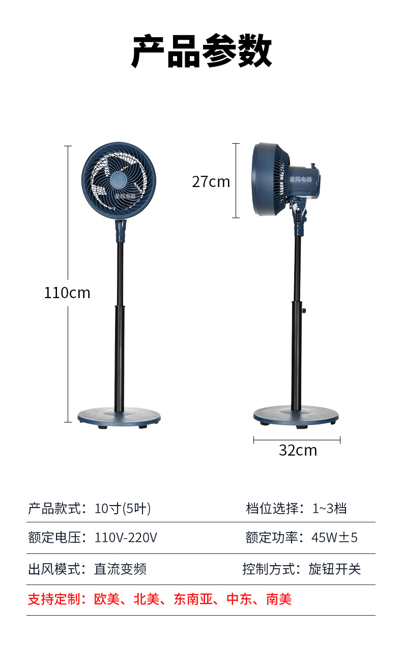 电风扇可摇头家用客厅办公跨境10寸循环落地扇南美热销110v220v
