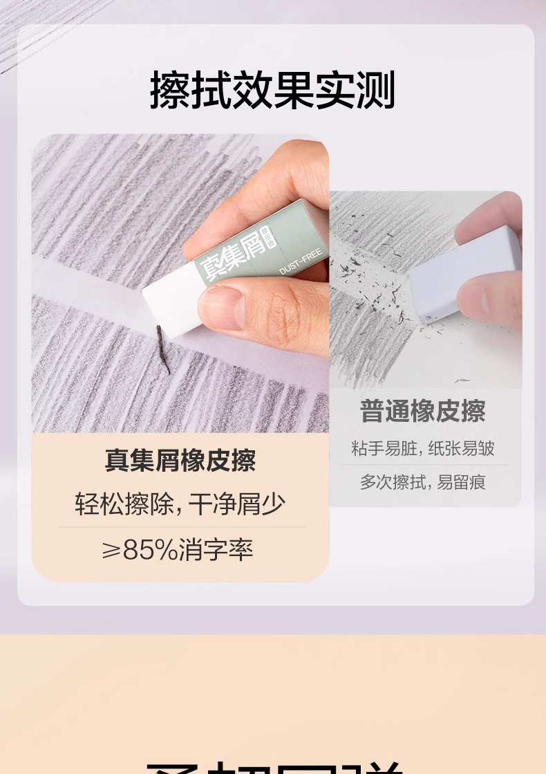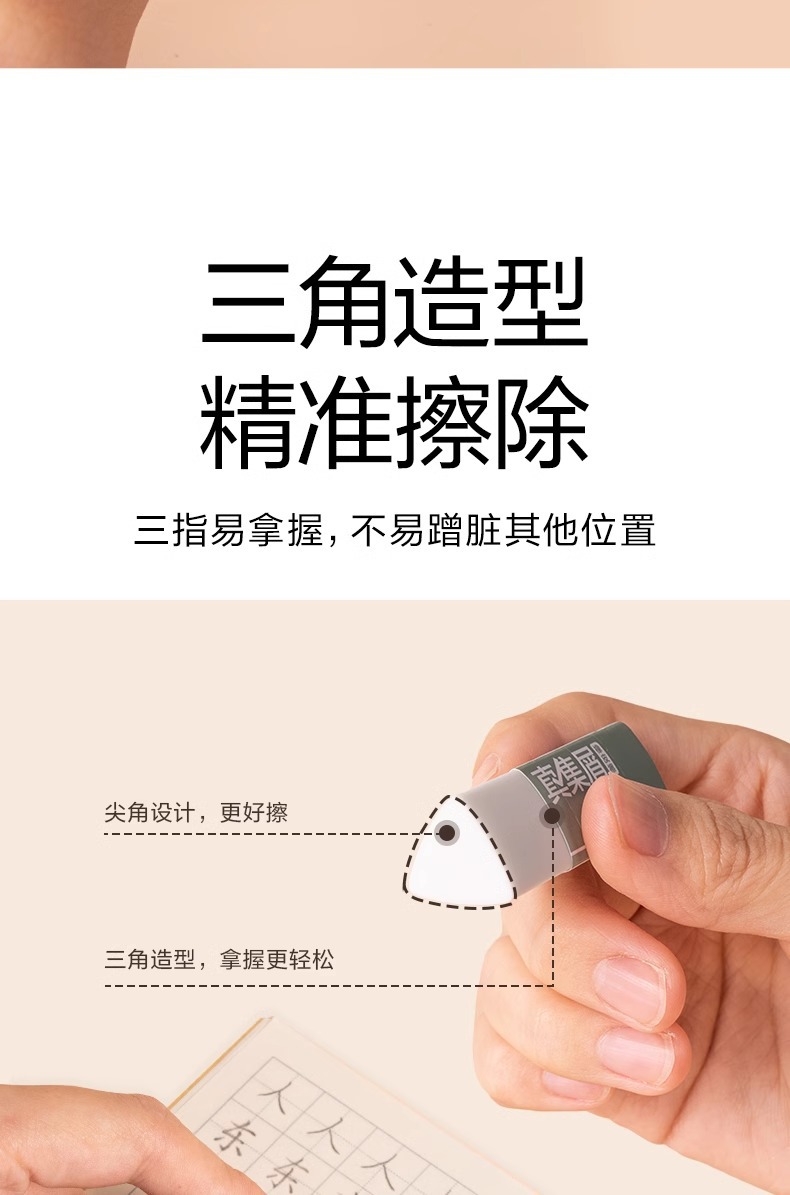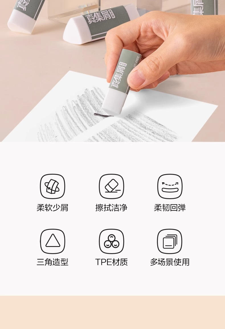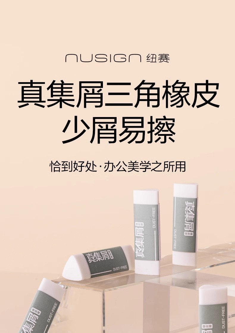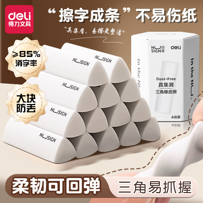 得力纽赛三角橡皮擦小学生用一年级无屑擦字成线擦拭成条擦得干净
