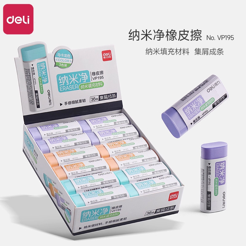 得力NS038ニュレースペン形消しゴム真集屑マカロン色皮拭き小学生用字を線にして皮を拭きます。