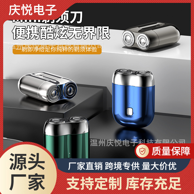 批发-剃须刀旋转式双刀头剃须刀Type-C充电小巧便携式剃须刀
