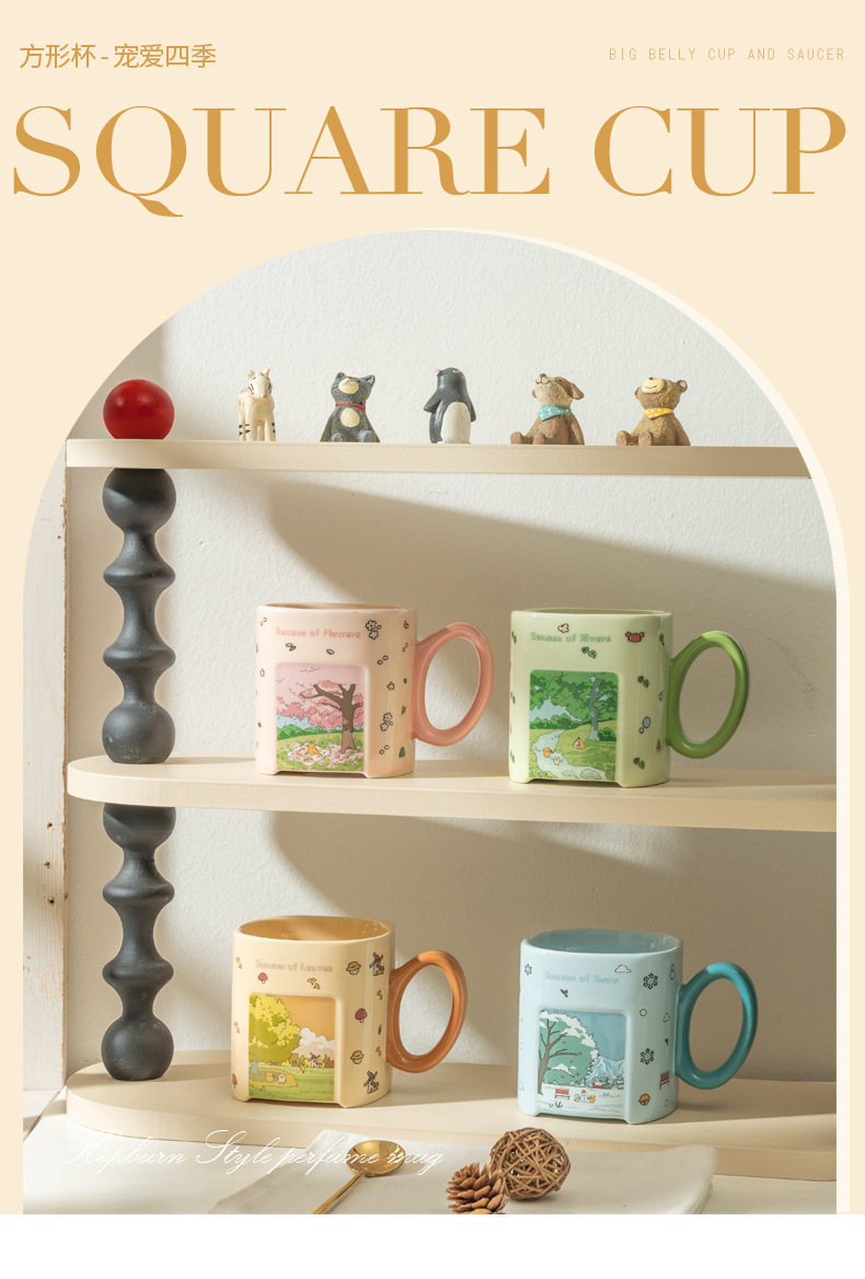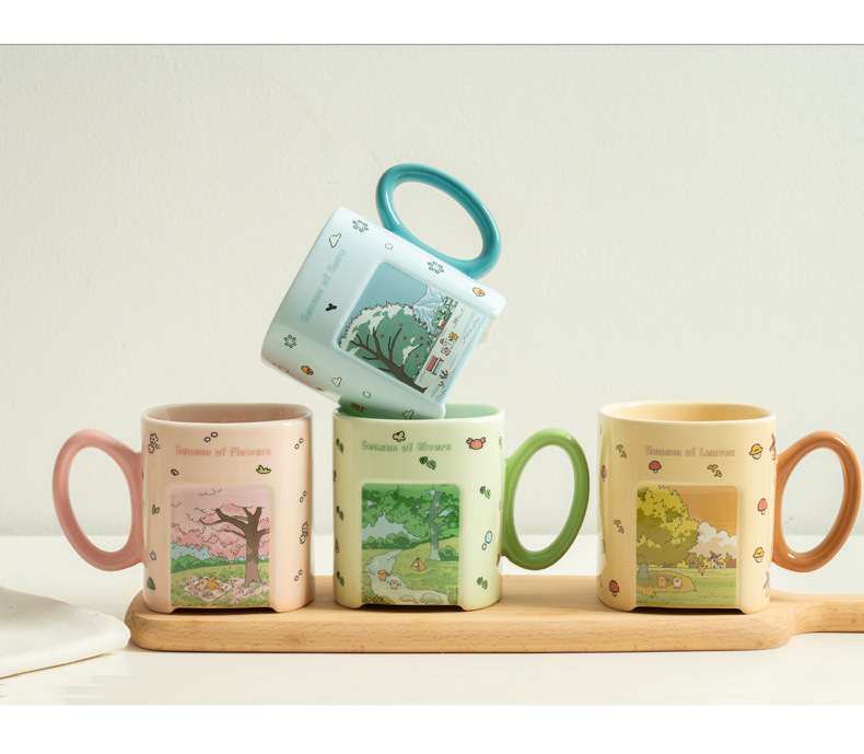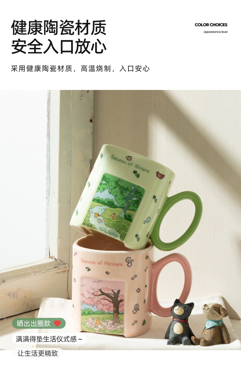 城水彩風厚実牛乳朝食カップ誕生日プレゼントマグカップセラミックカップ家庭用コーヒーカップ