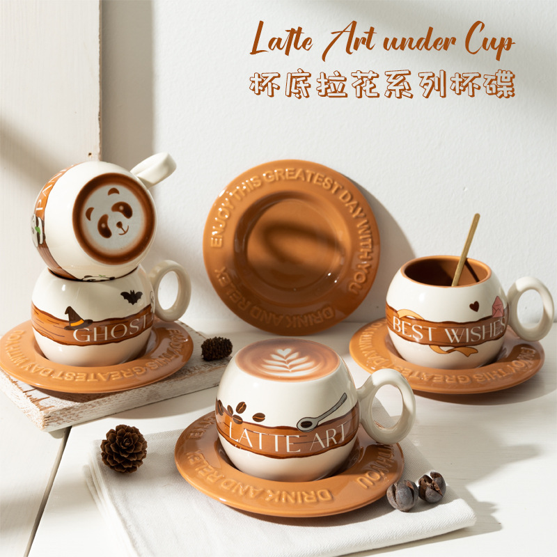 カップ底プルカップクリエイティブプレゼントカップル家庭用スプーンミルクかわいいセラミックパンダコーヒーカップ皿セット