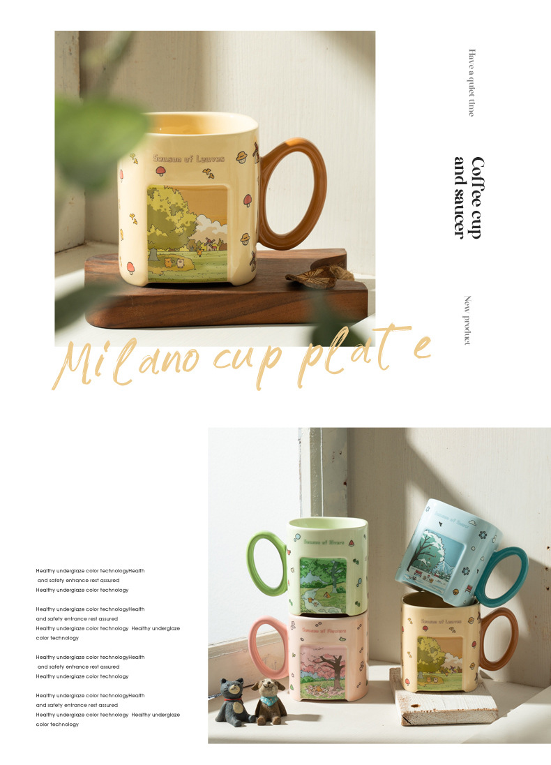 植物園韓国式防塵牛乳朝食カップオフィスマグカップカップカップカップセラミックコーヒーカップ蓋付きカップ