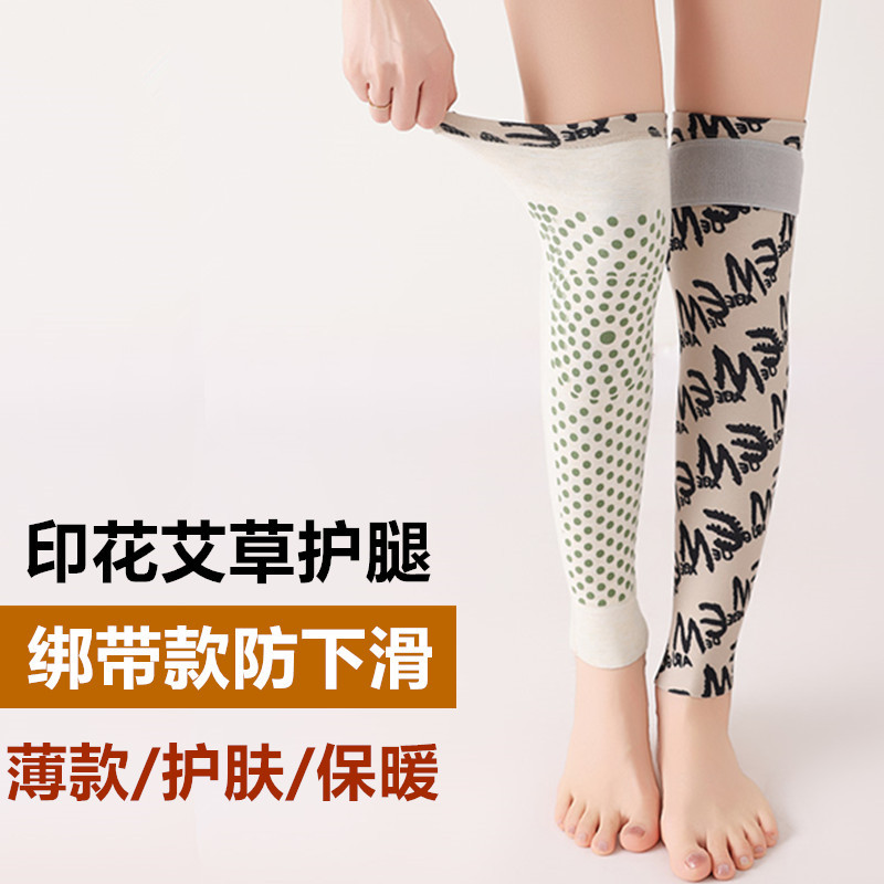 绒德印花艾草绑带护腿护膝盖老寒腿关节防滑男女老人保暖防寒长套