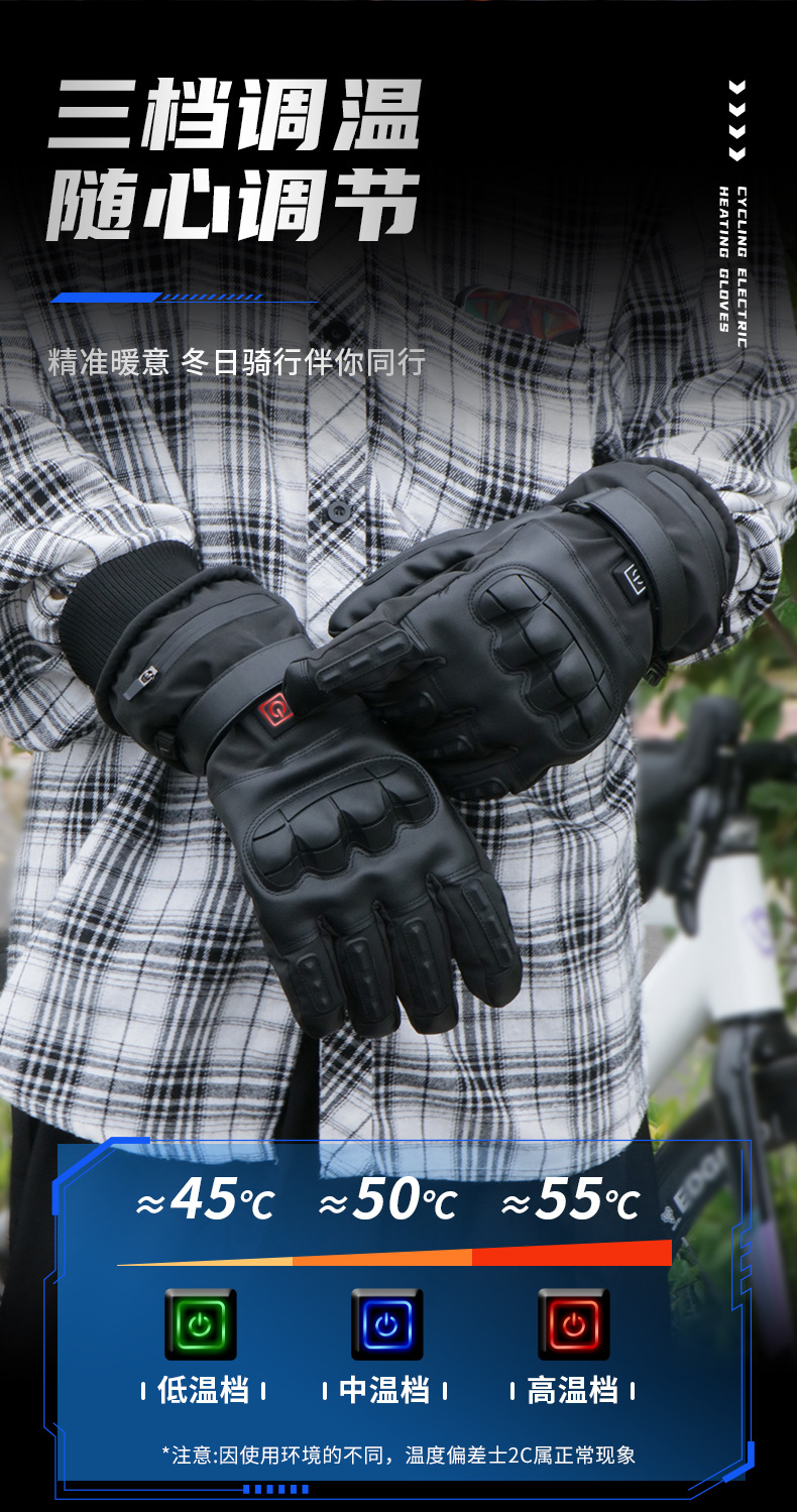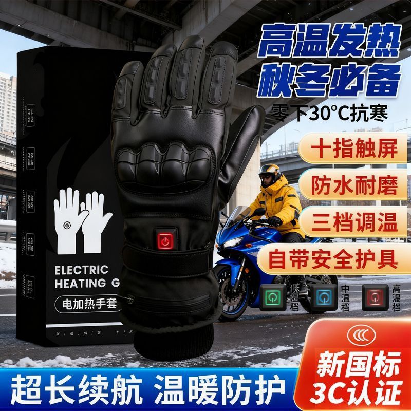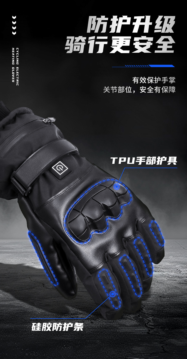 摩托车骑行充电加热手套冬季保暖防风寒机车装备防水发热防摔耐用