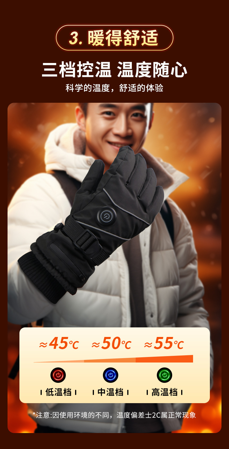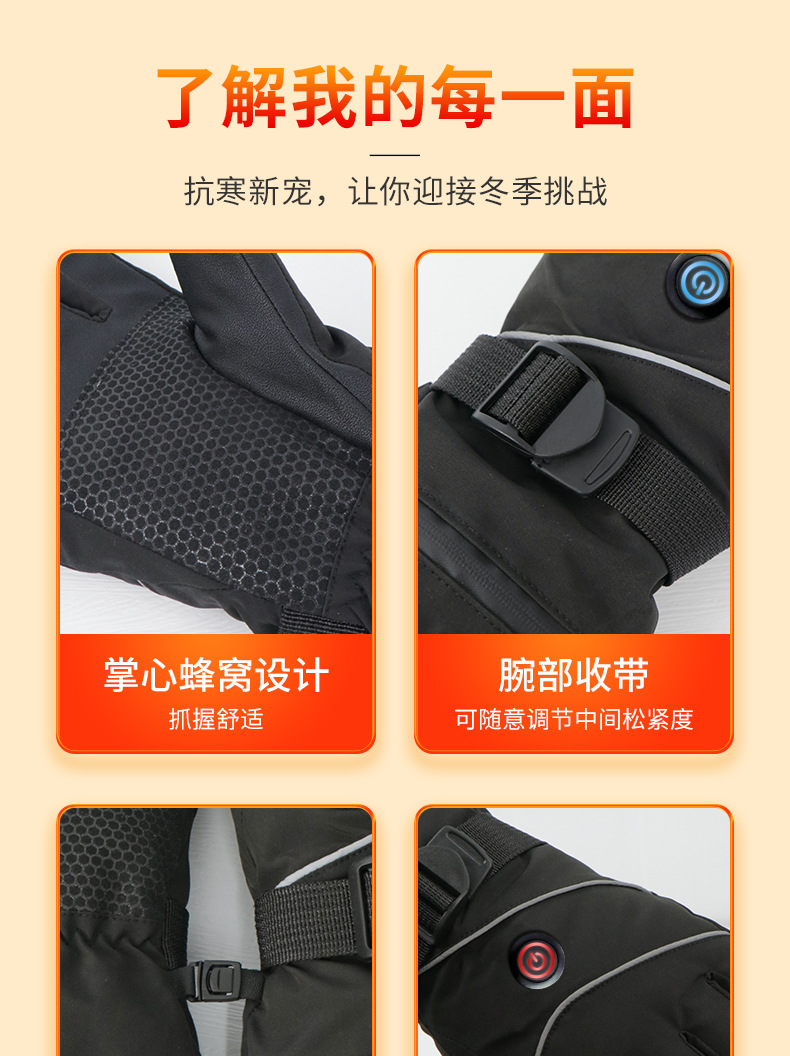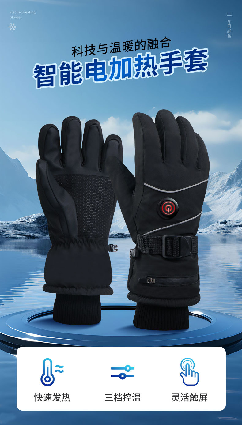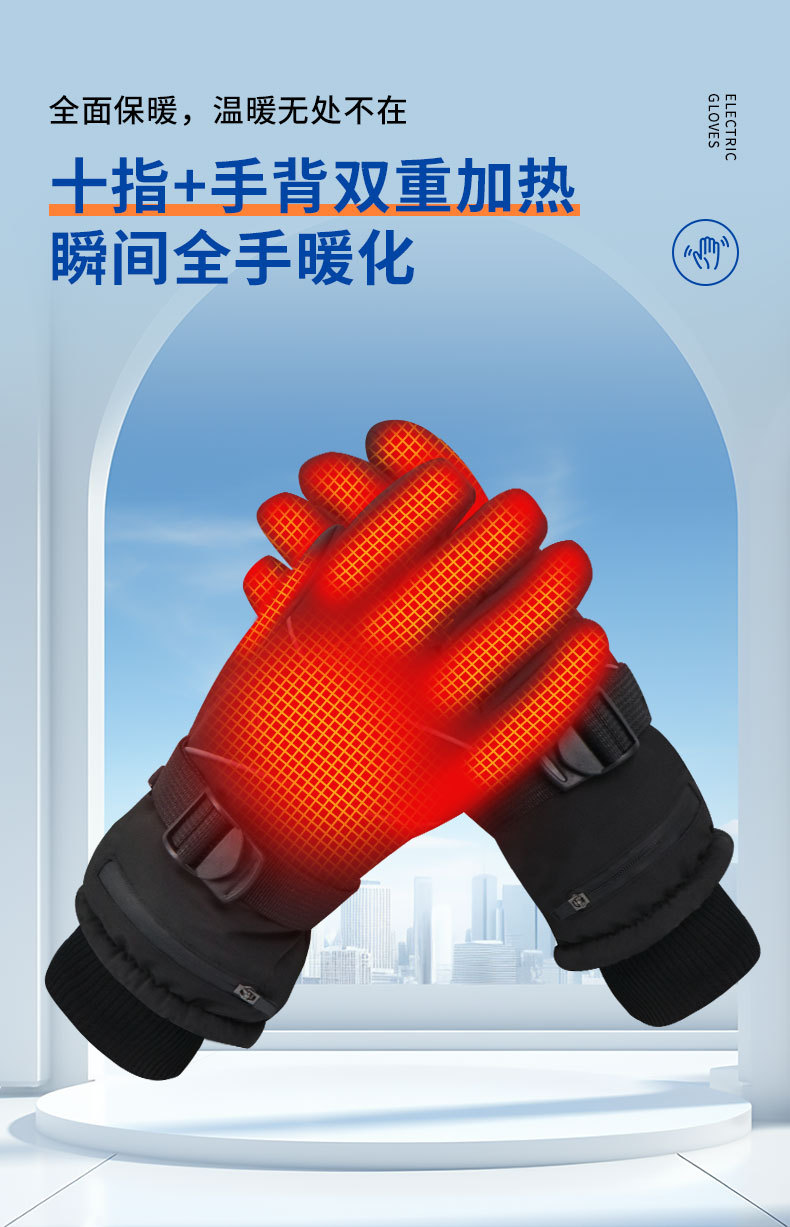 电加热手套滑雪防寒手套锂电池可触屏发热暖手套户外骑行跨境