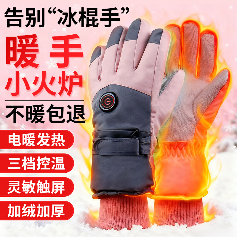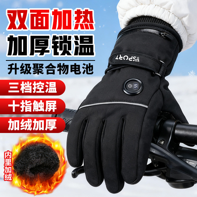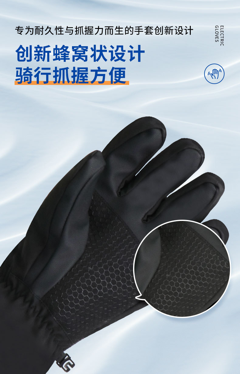 秋冬电加热滑雪保暖防水情侣户外骑行触屏加绒防寒防风电动车手套