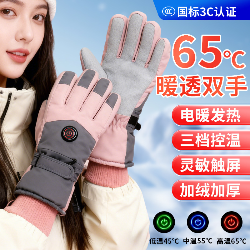 滑雪手套女士冬季骑行保暖触屏防寒防风防水骑车加热手套触屏设计