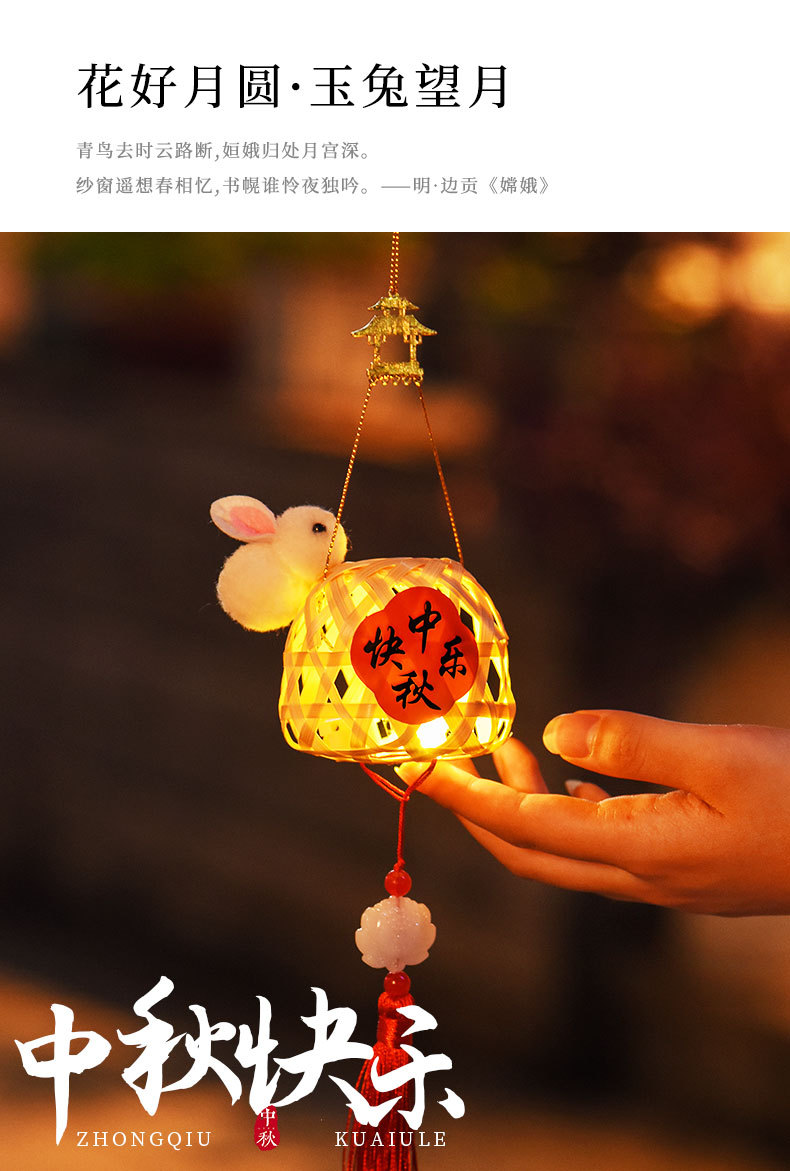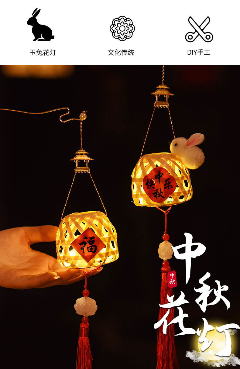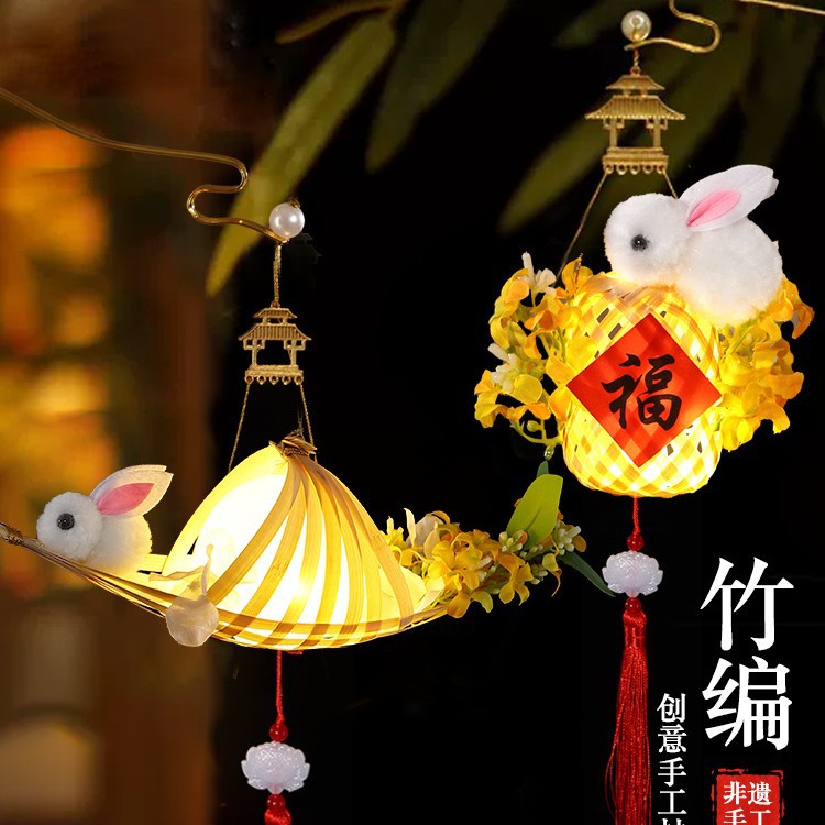 卡通小兔子发光手提花灯儿童手工diy竹编灯笼元旦节古风醒狮灯笼