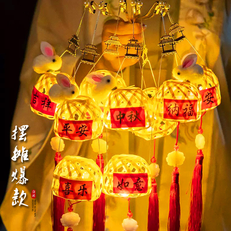 新年竹製提灯 新型中国風子供用春節うさぎ提灯 竹製手作りDIY提灯 屋台販売