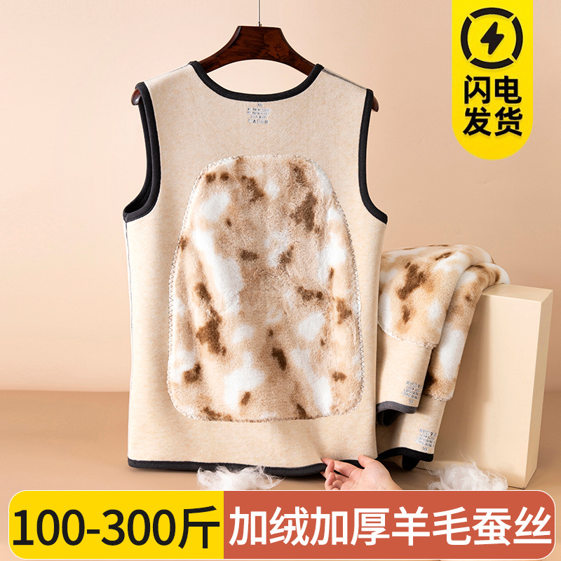 桑絹糸ウール男性徳絨毛保温ベストは痕跡がなく、発熱とベルベットの厚いパッチ保温の大きいサイズの馬甲である