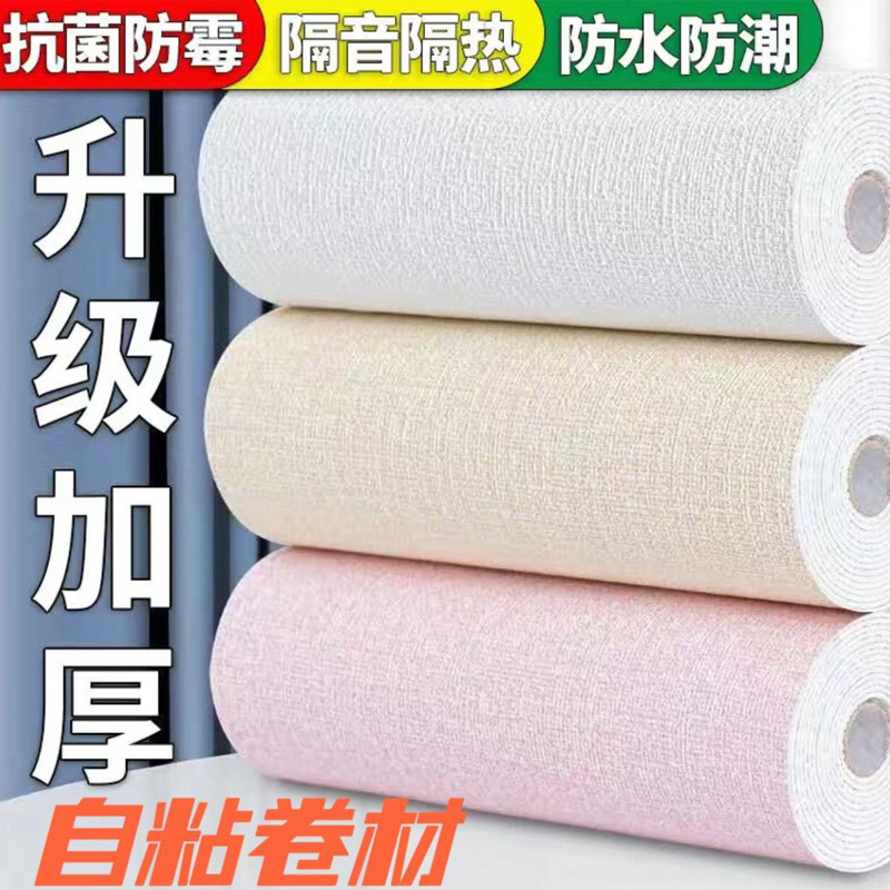 亜麻の壁紙の自己接着防水防湿セメントの壁のリフォーム3d立体の壁は寝室の暖かい背景の壁の壁紙を貼ります。