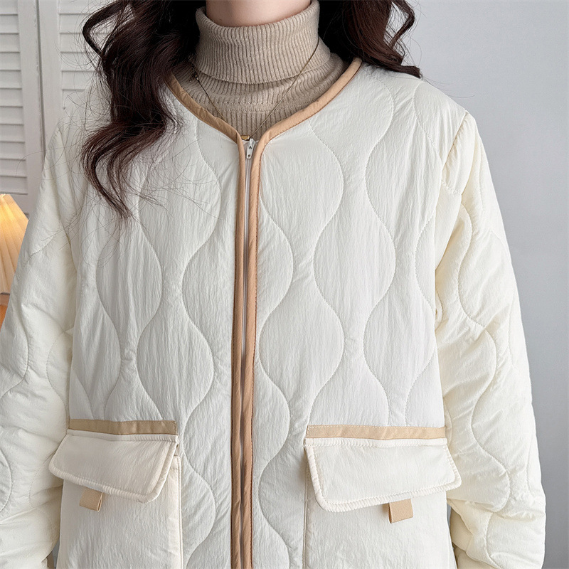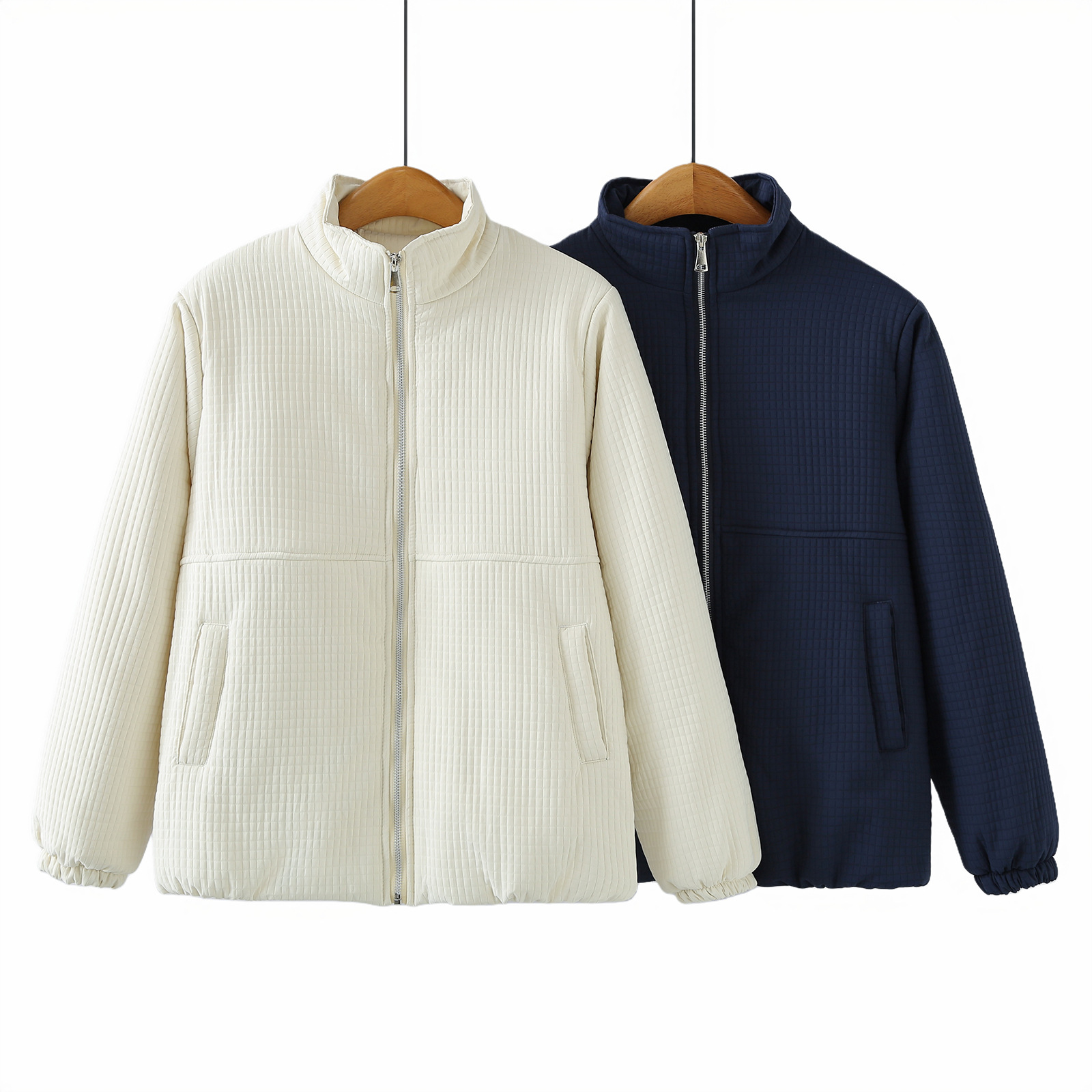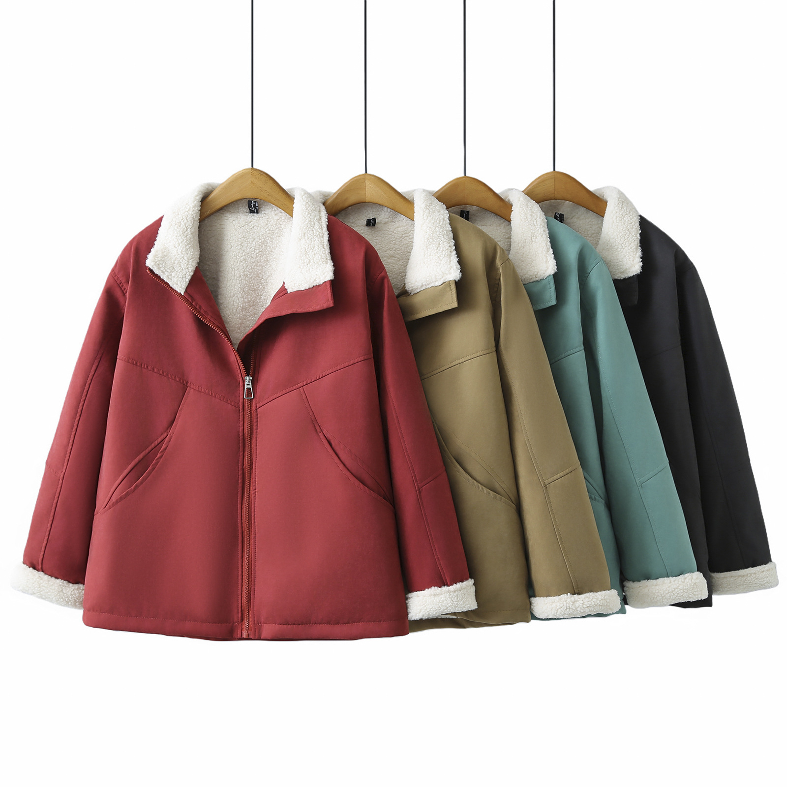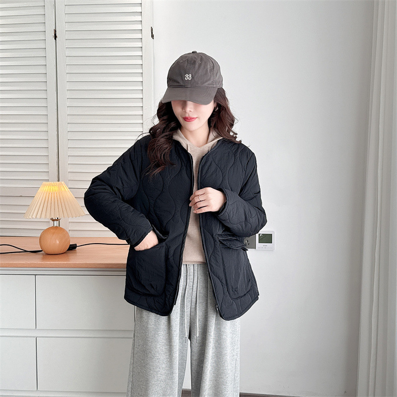 2025秋冬大码加绒棉服女简约百搭夹棉外套加厚显瘦胖妹棉衣2517