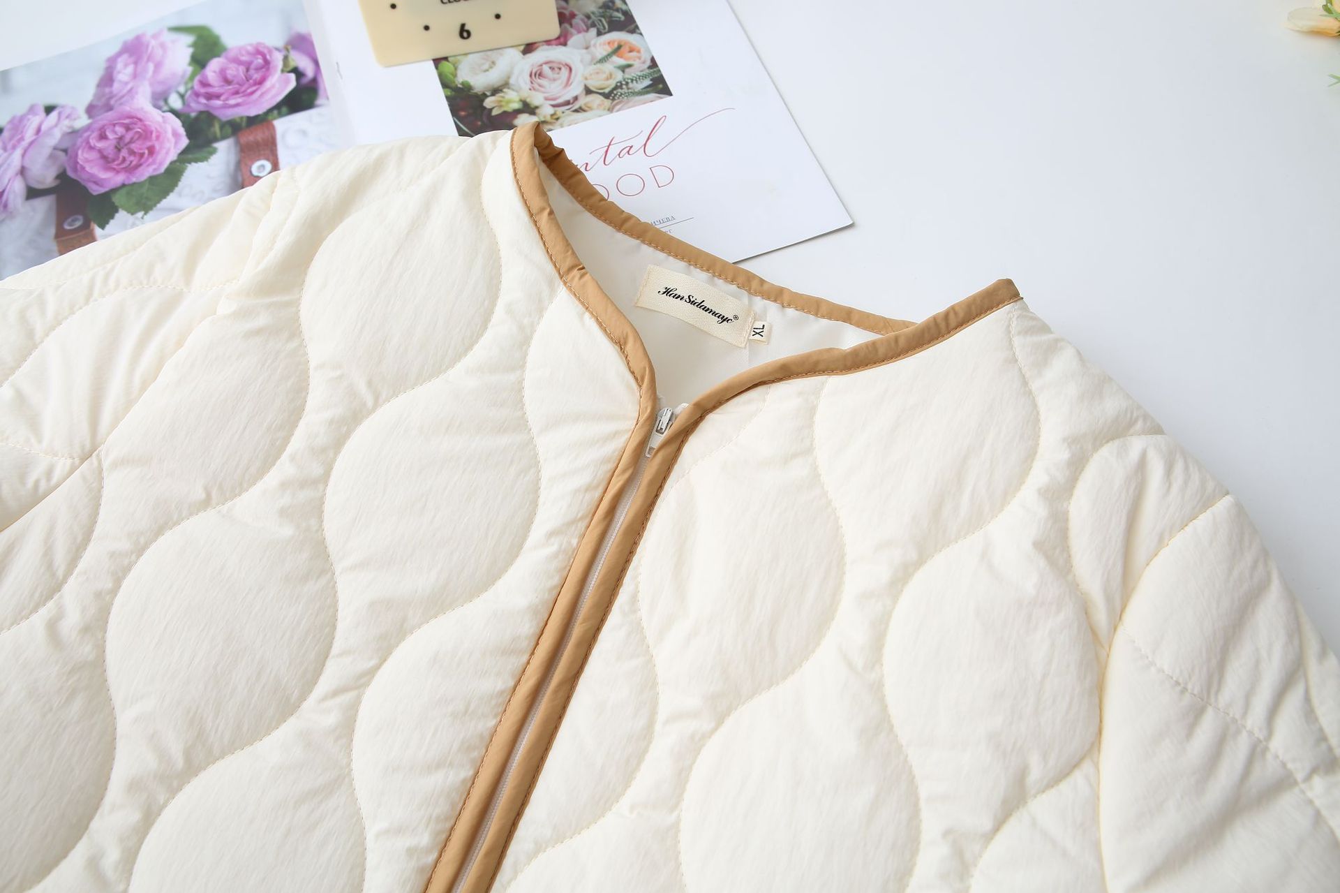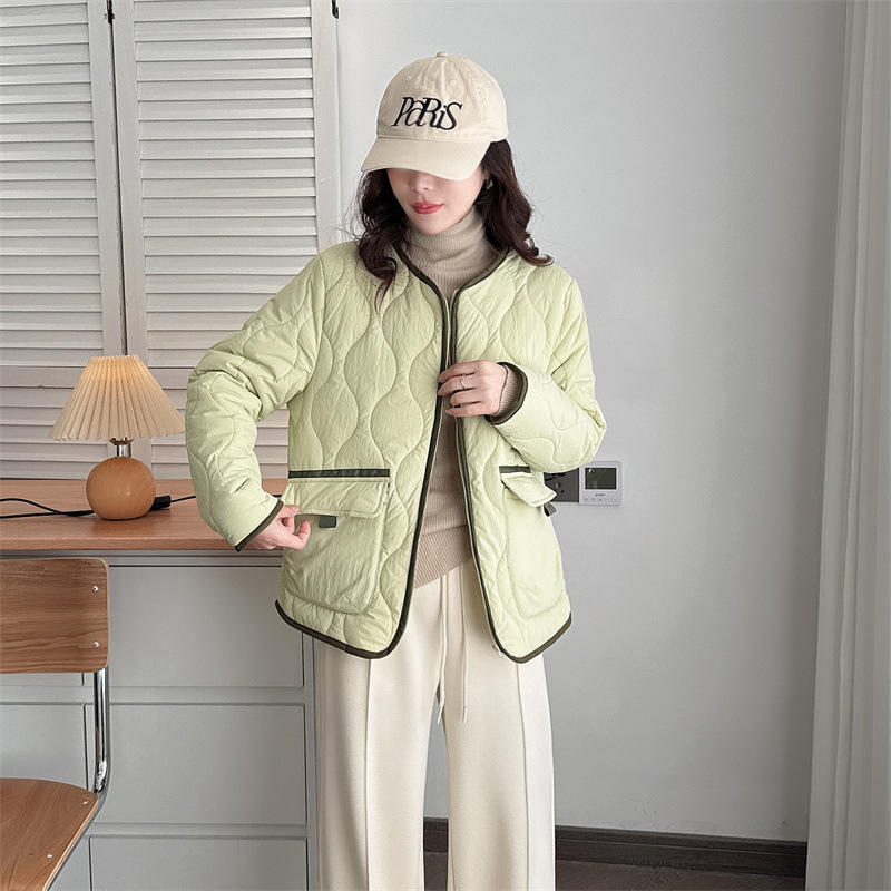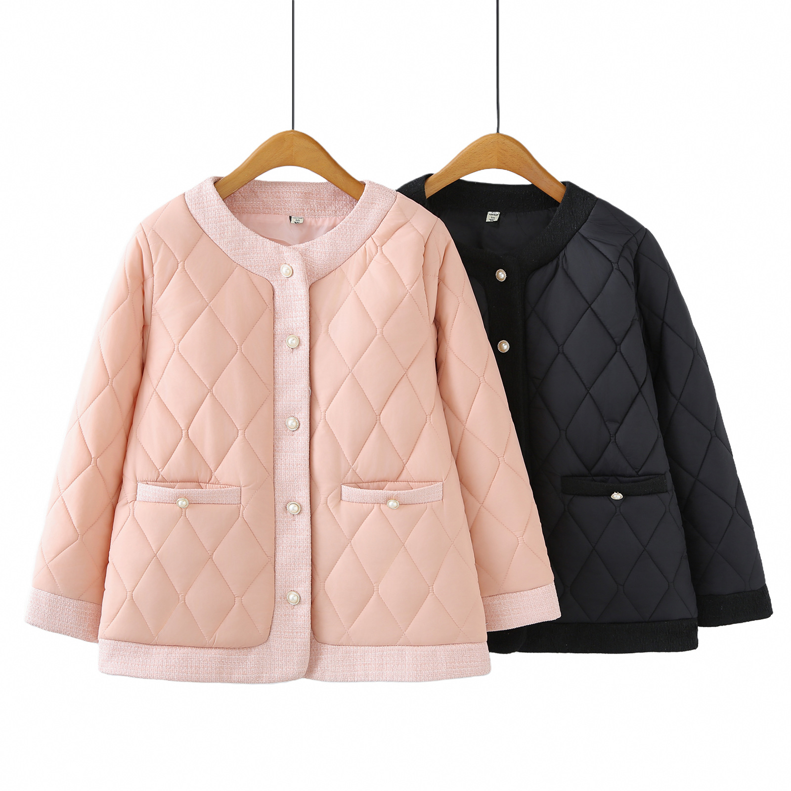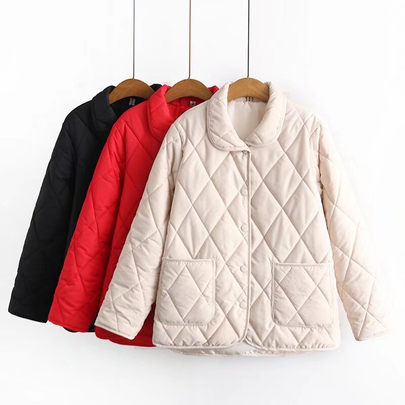 2023秋冬菱形格大码薄棉服女翻领简约百搭棉外套显瘦胖妹棉衣236
