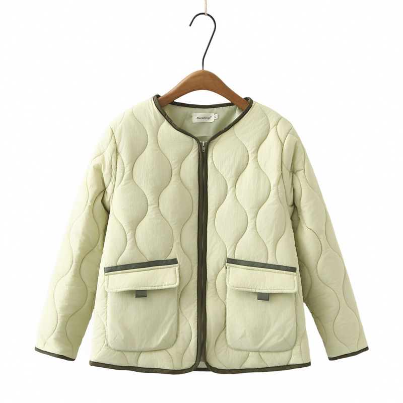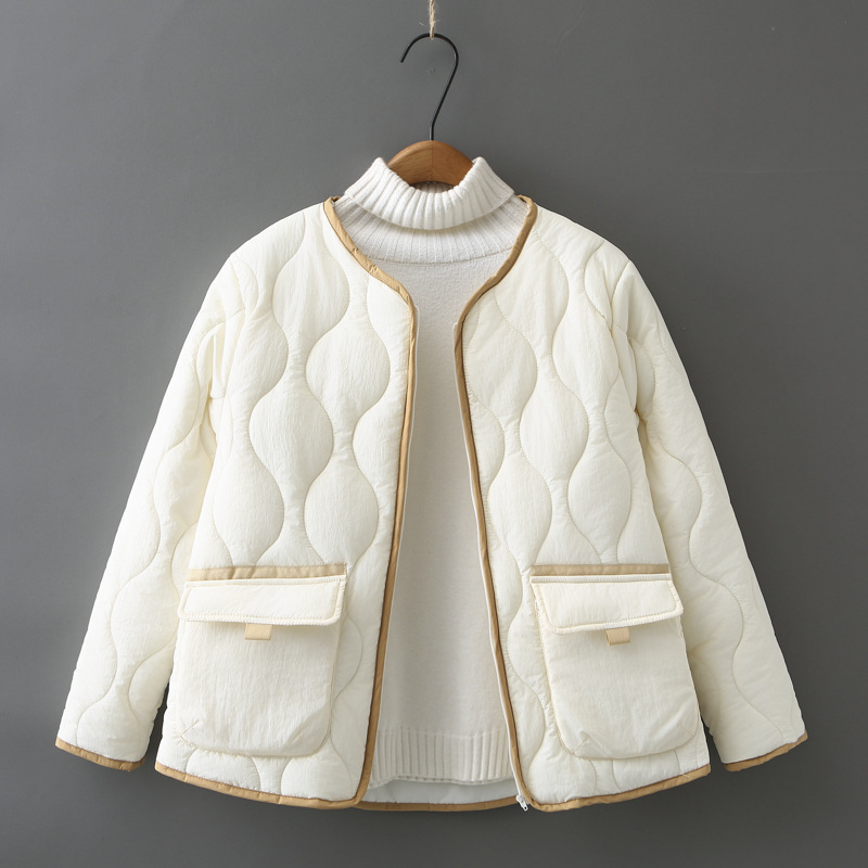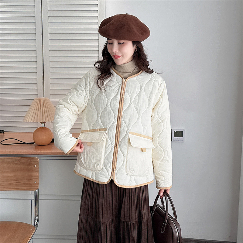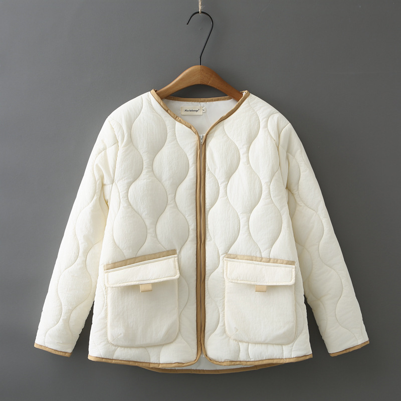 2023秋冬菱形格大码薄棉服女翻领简约百搭棉外套显瘦胖妹棉衣236