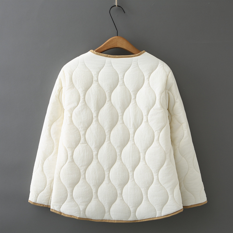 2025秋冬大码棉衣女花边圆领小香风竖纹夹棉上衣胖妹棉服2516