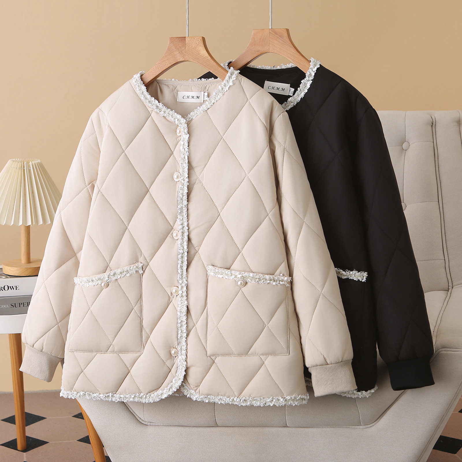 2025秋冬小香风棉服女大码薄棉外套花边上衣时尚百搭胖妹棉衣8852