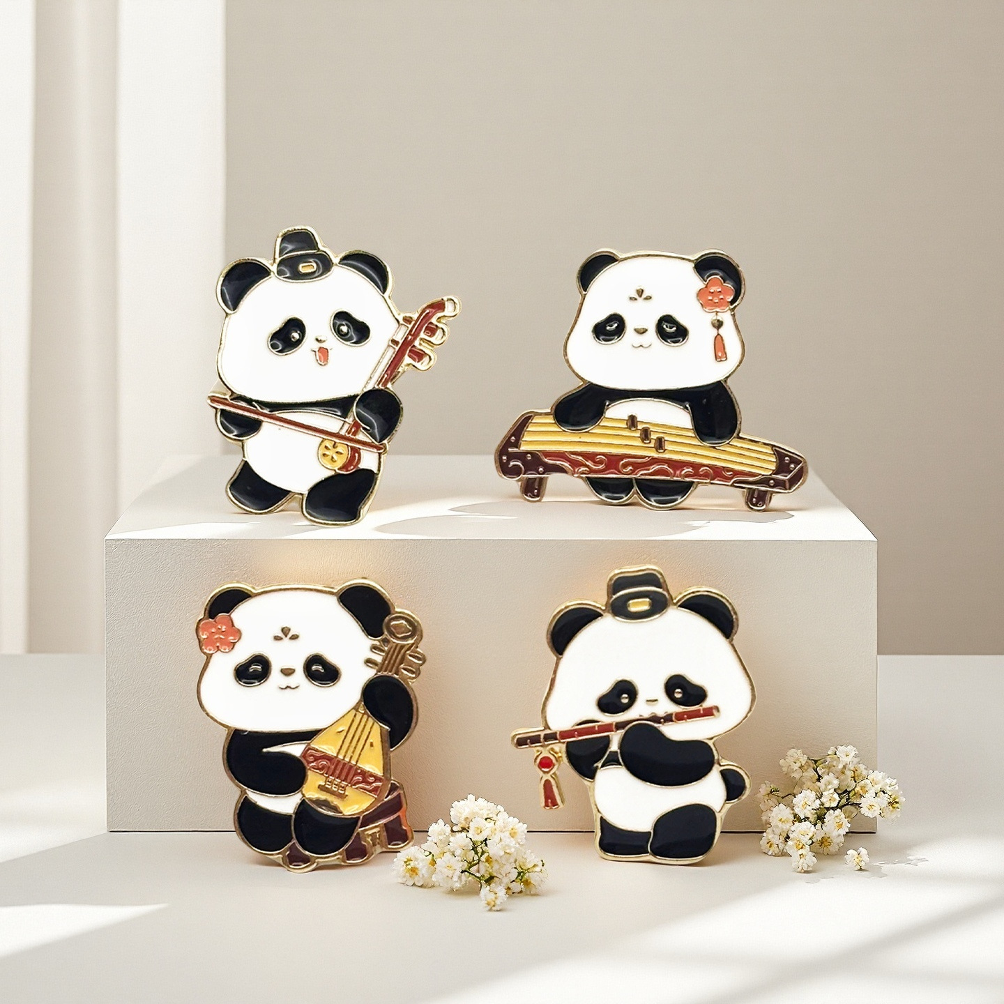 漫画の古典的な楽器パンダ金属バッジピン古筝笛パンダブローチ中国風バッグ装飾
