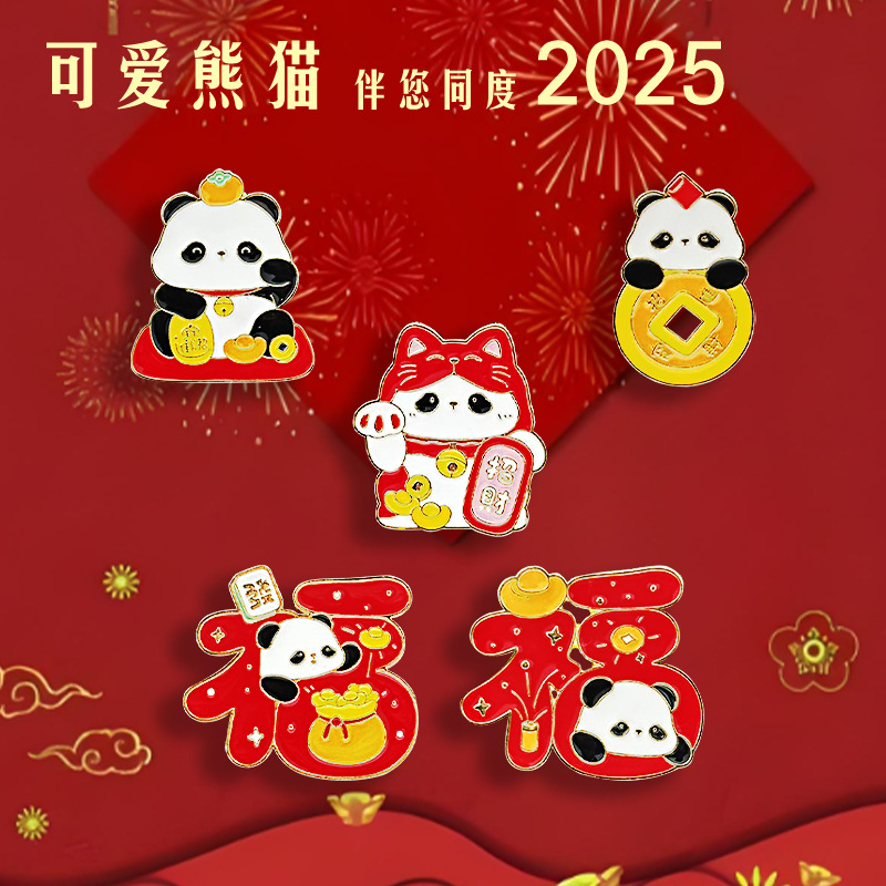 2025年のお祝いに、中国風の漫画パンダのバッジ、国宝、新年、かわいいブローチ、幸運と富を呼ぶ、男女兼用の装飾品