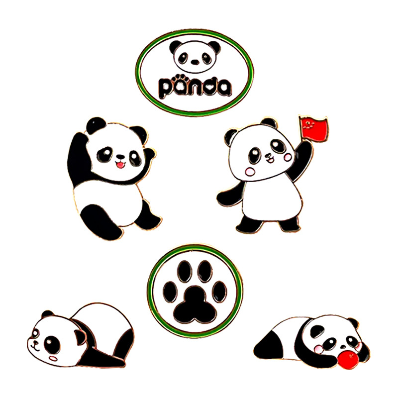 卡通熊猫金属徽章pin花卉植物系列胸针百搭包包配饰小礼品送朋友