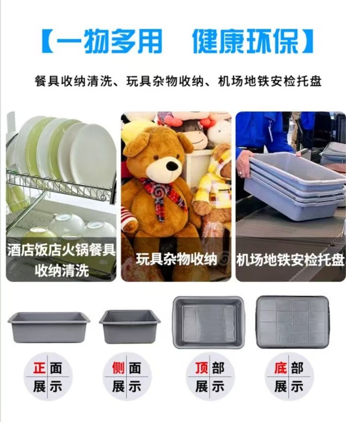 空港安全検査プラスチック盆灰白色プラスチック安全検査盆地鉄安全検査かごプラスチックホテルレストラン収納食