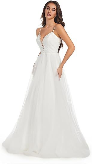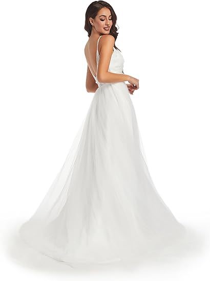国境を越えたvネックのウェディングドレスの新型ストラップの背中を見せて身を修めるのは簡単です。