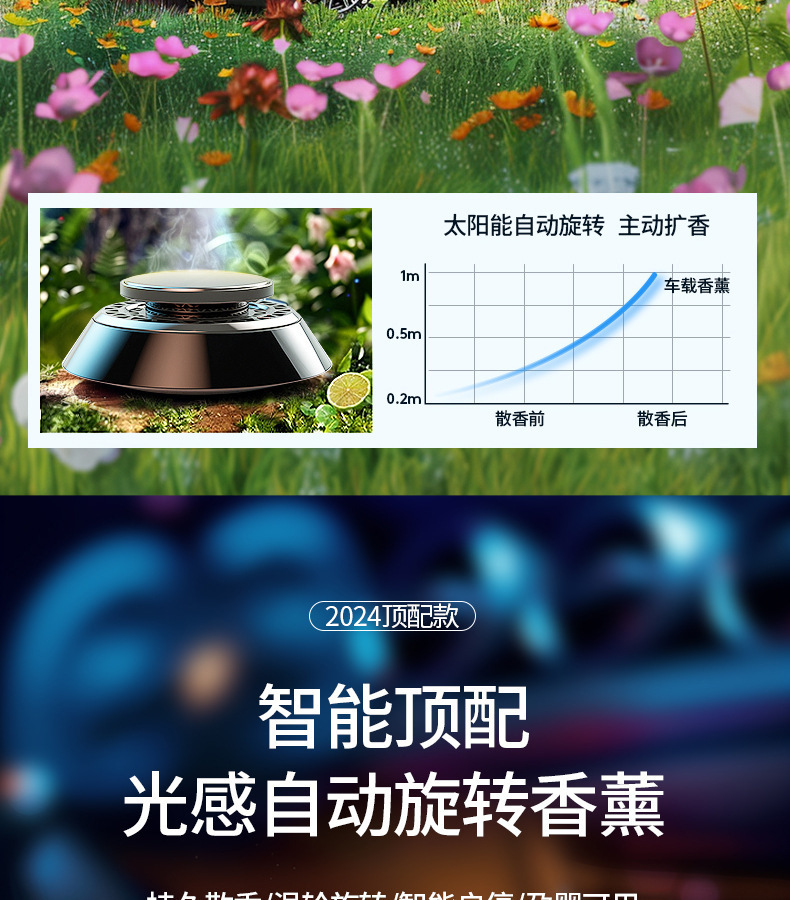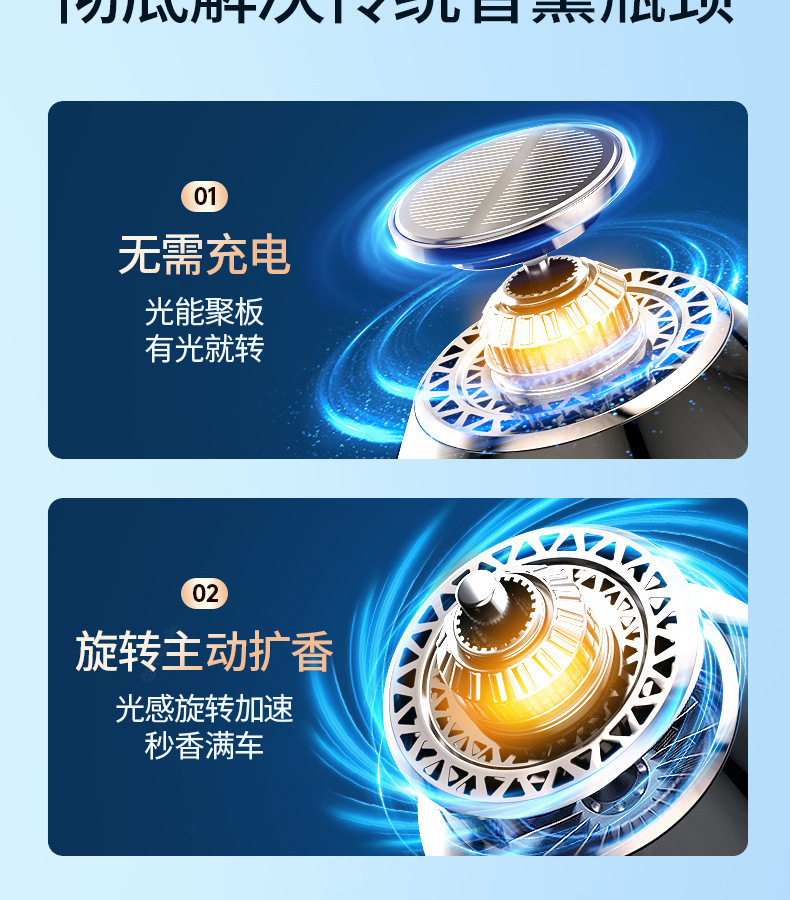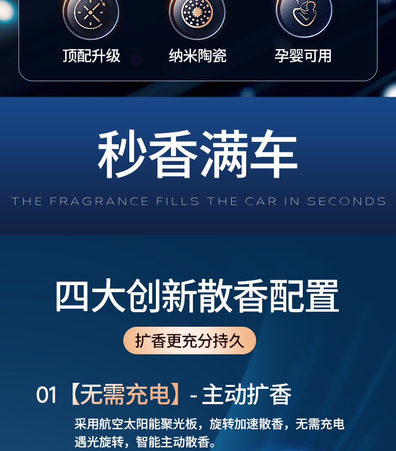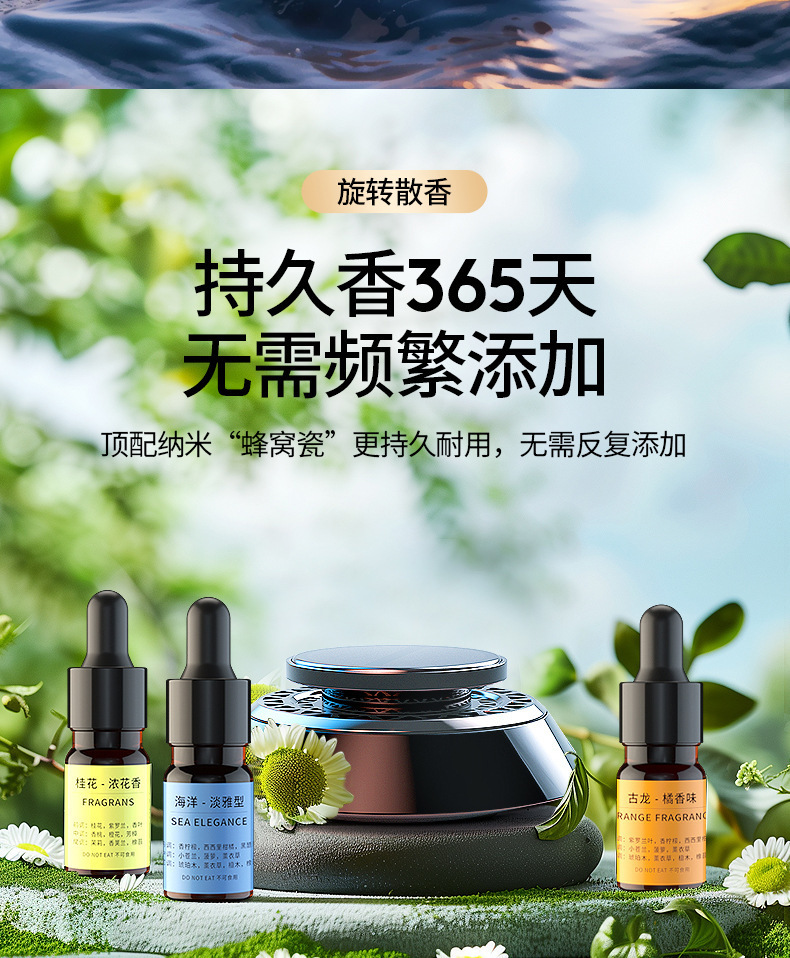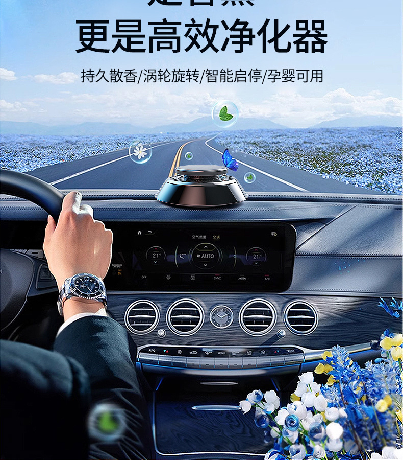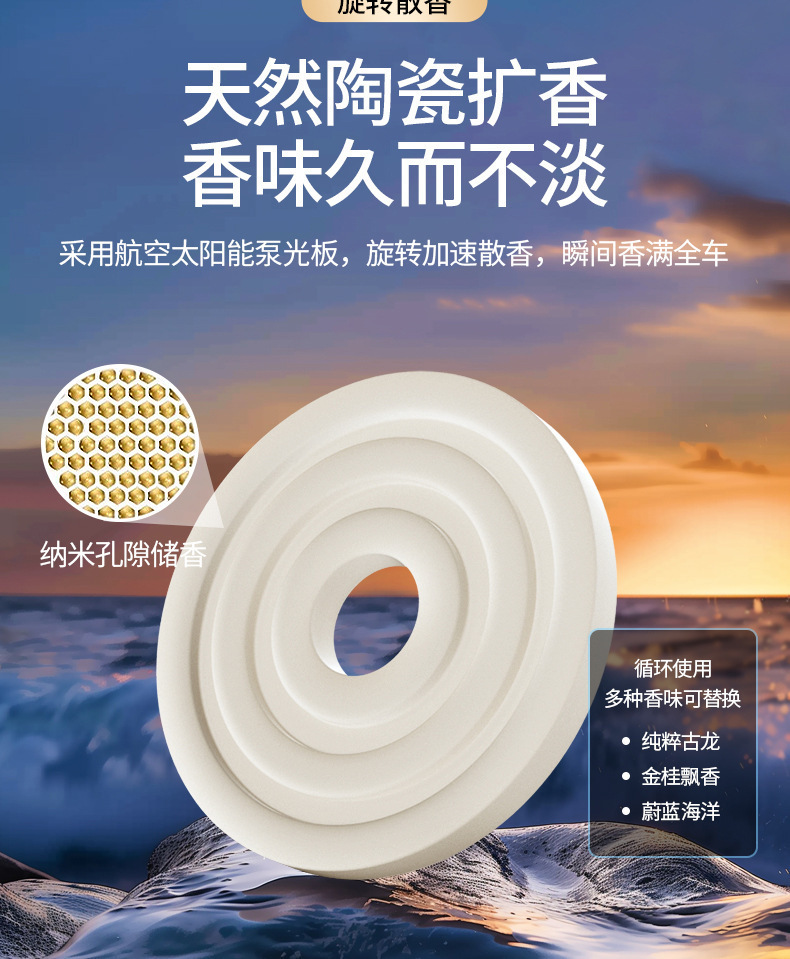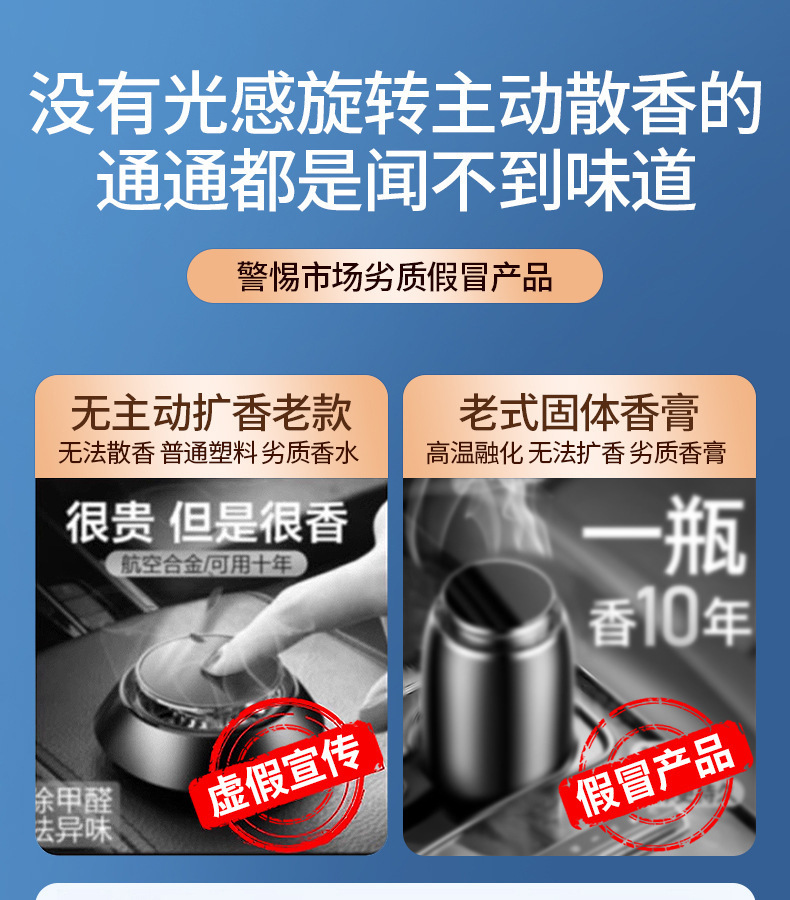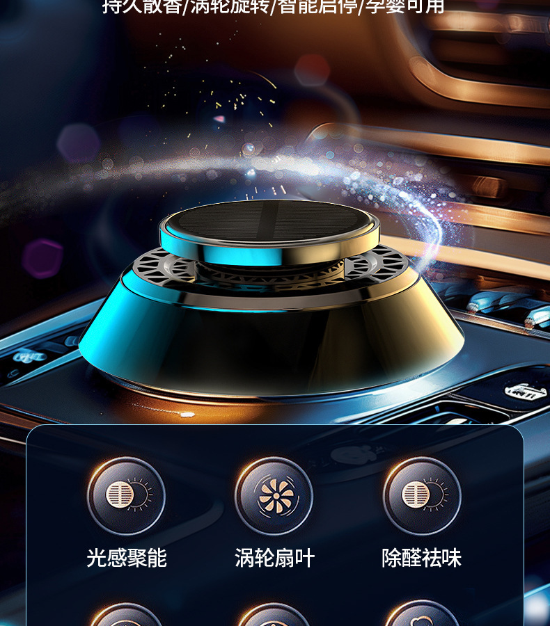 新商品の光感車載香水アロマエッセンシャルオイル自動車用香水アロマの置物が持続的に散っています。