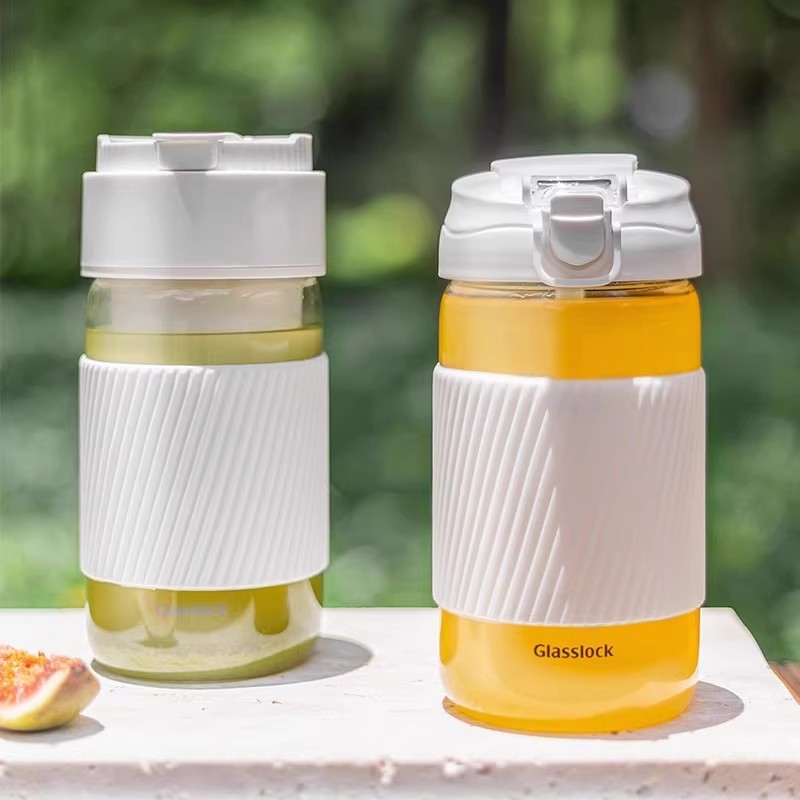 Glasslock ジューサー ポータブル ダブルカバー ガラス ジュース カップ 多機能アイス クラッシュ フルーツ ジューサー
