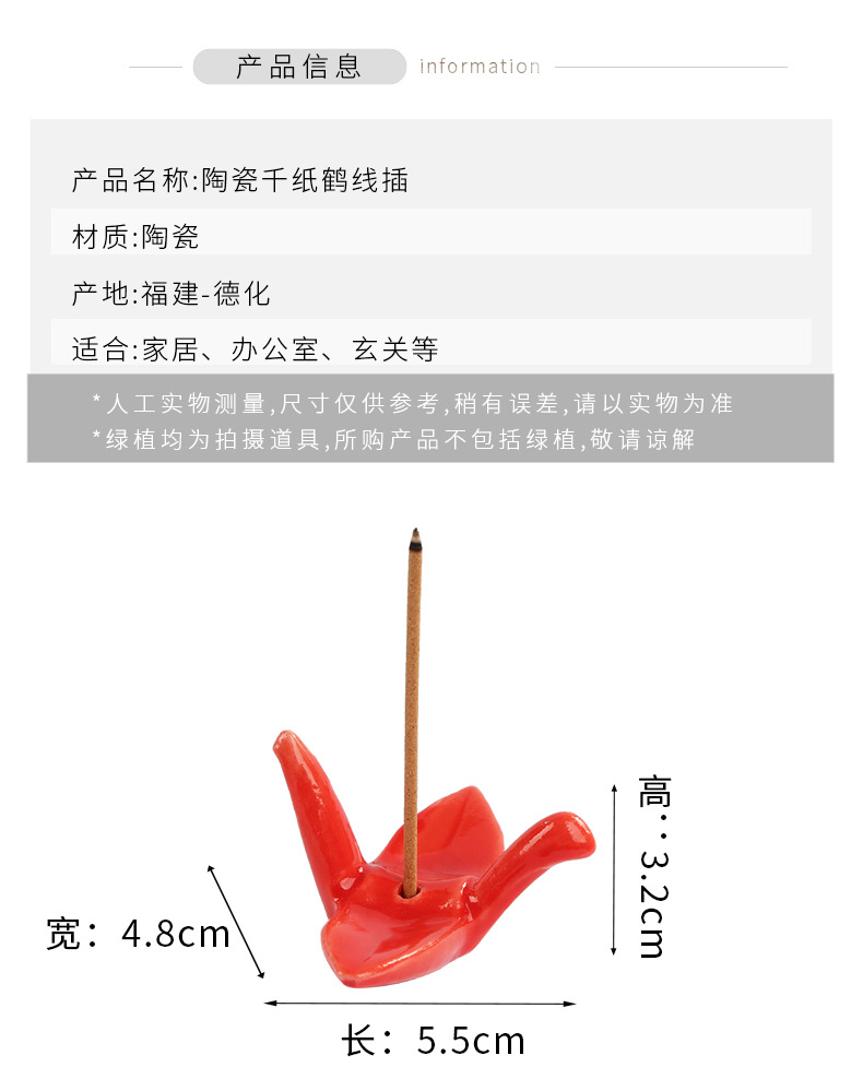日本式ゼカ陶磁千羽鶴線香香香挿し香座かわいい家庭用小置物香立家庭用香ブラケット