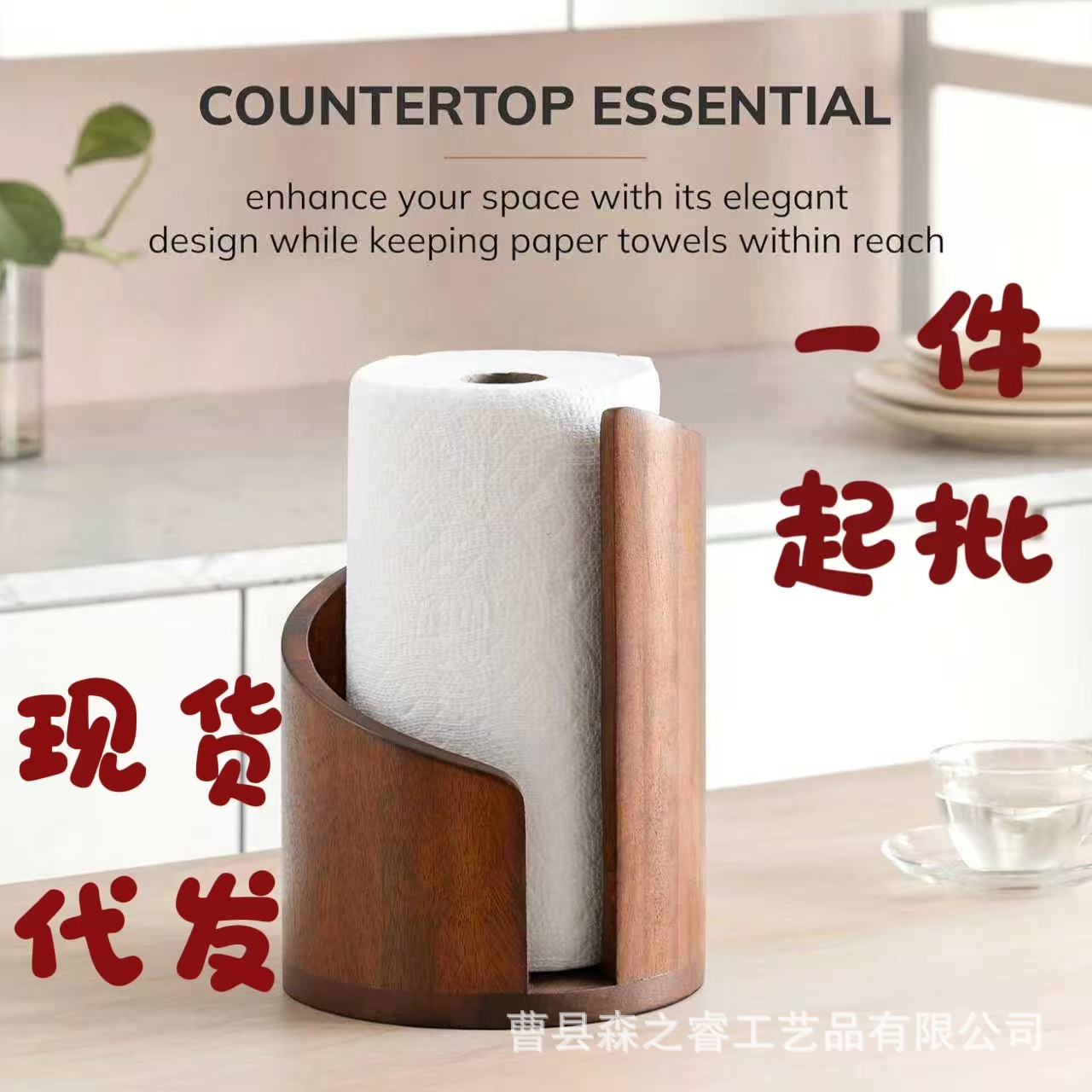 现货跨境批发木质厨房纸巾架圆形木质纸巾收纳架木质厨房纸巾存储