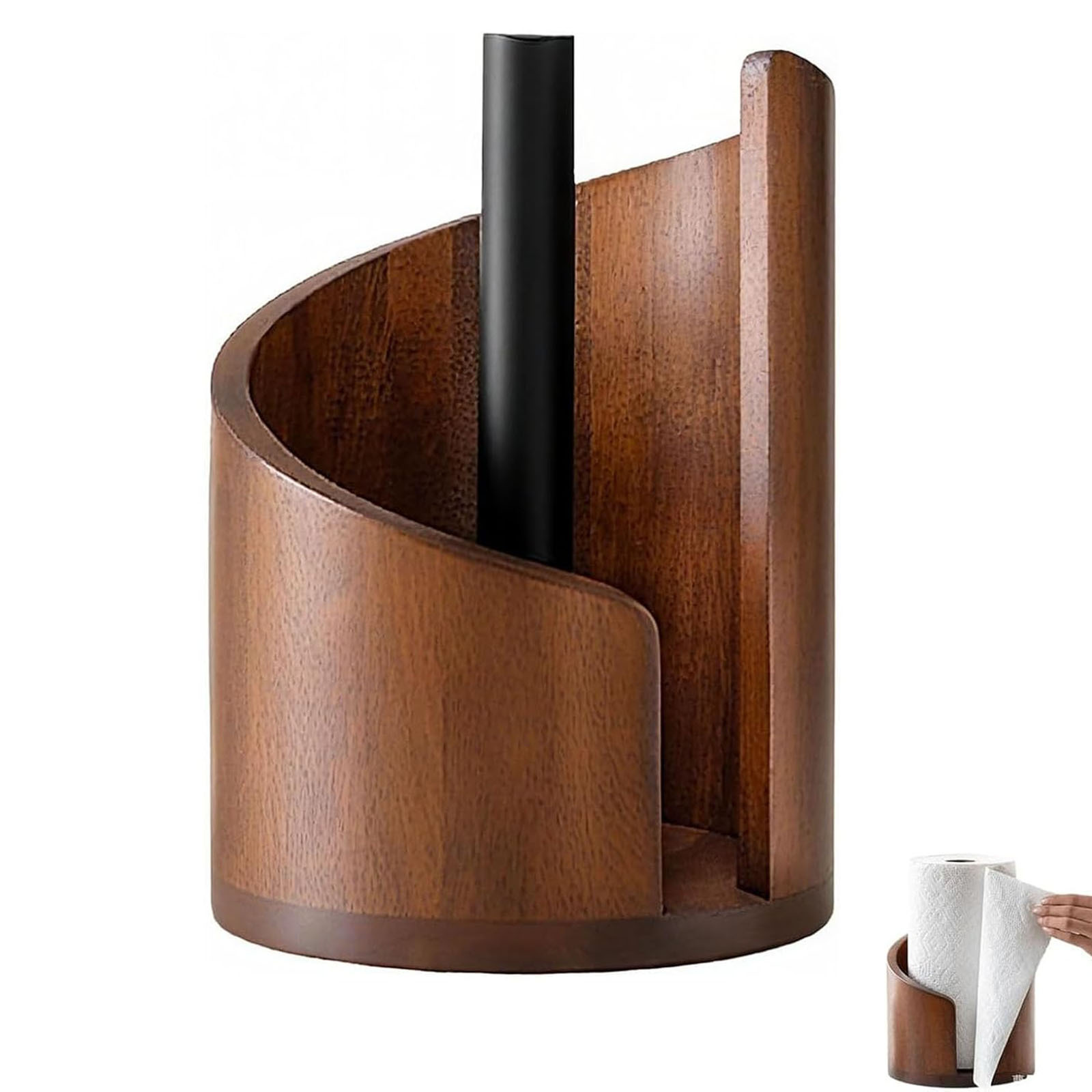 木质台面纸巾架 配芒果木圆形底座和铁架 可容纳大卷纸和超大卷纸