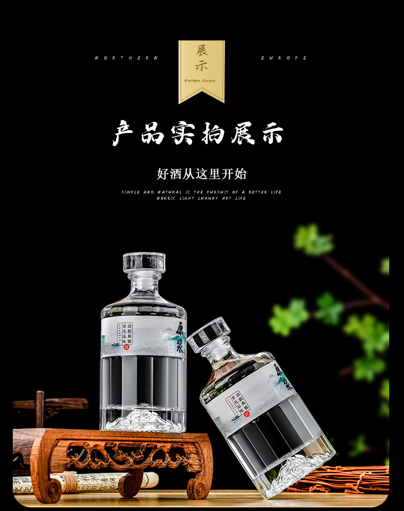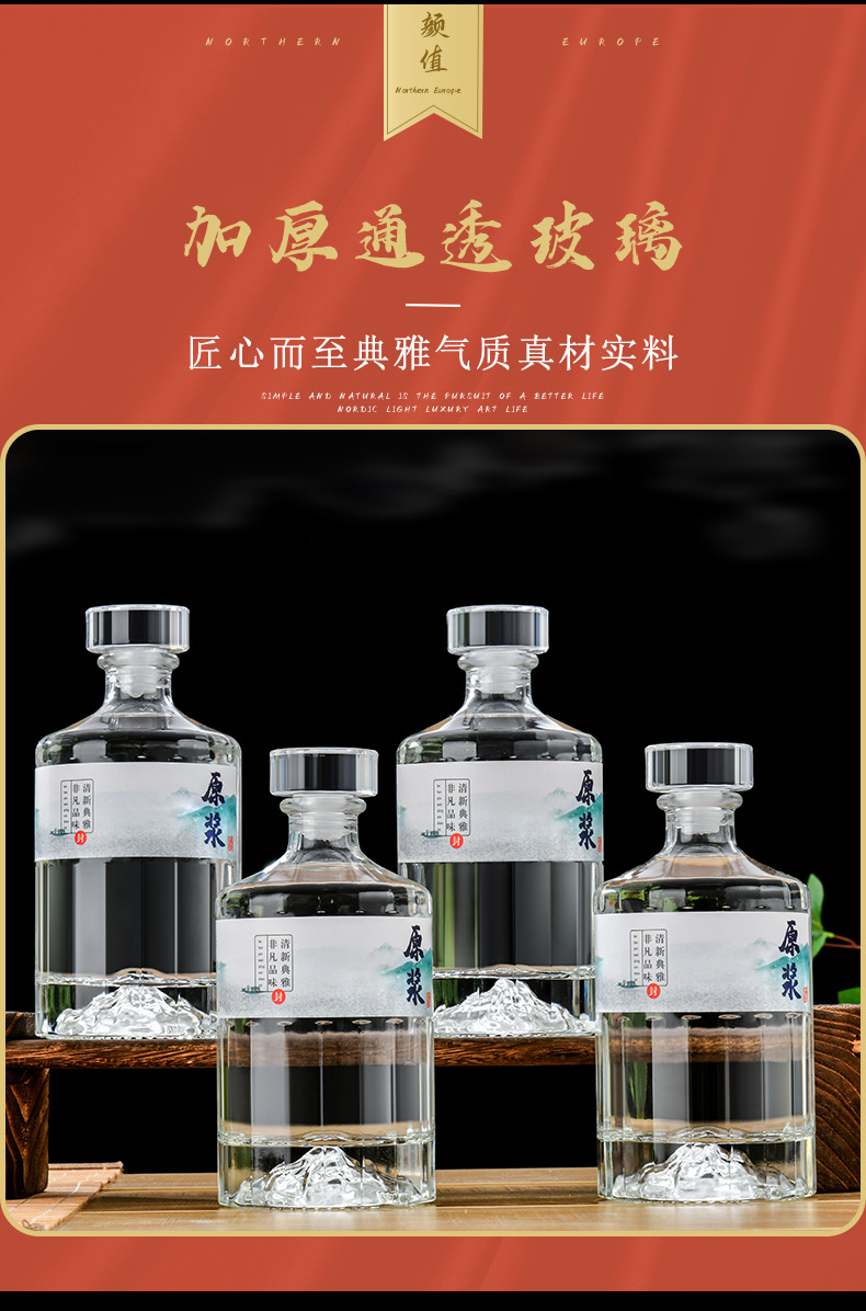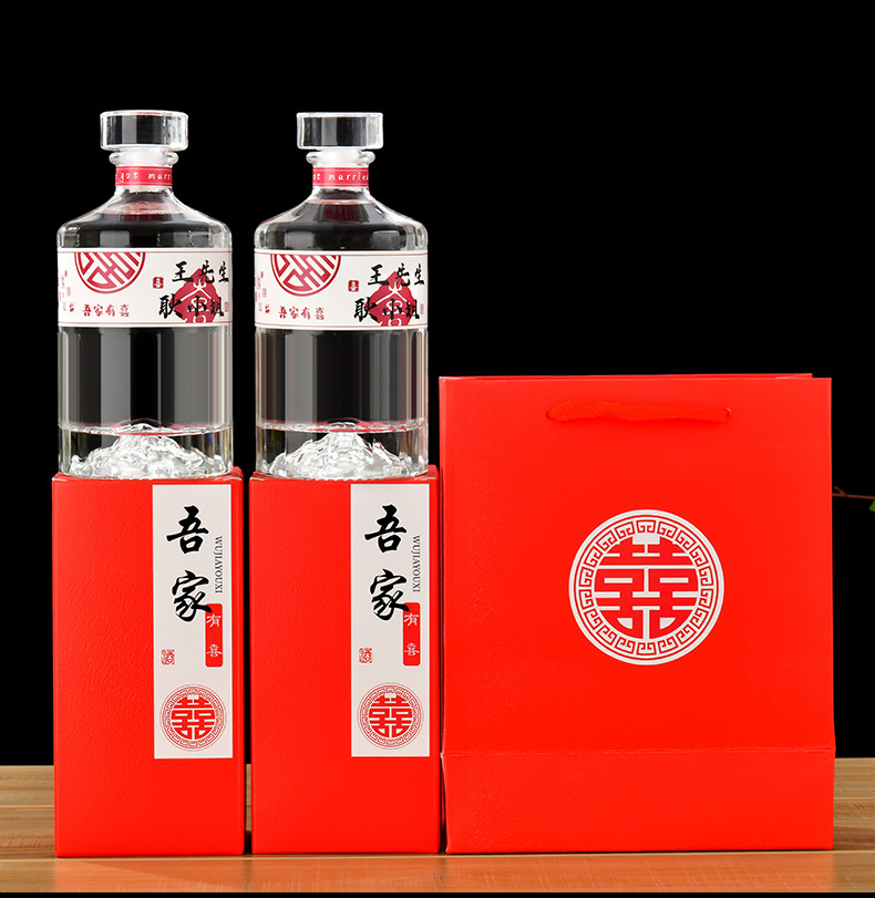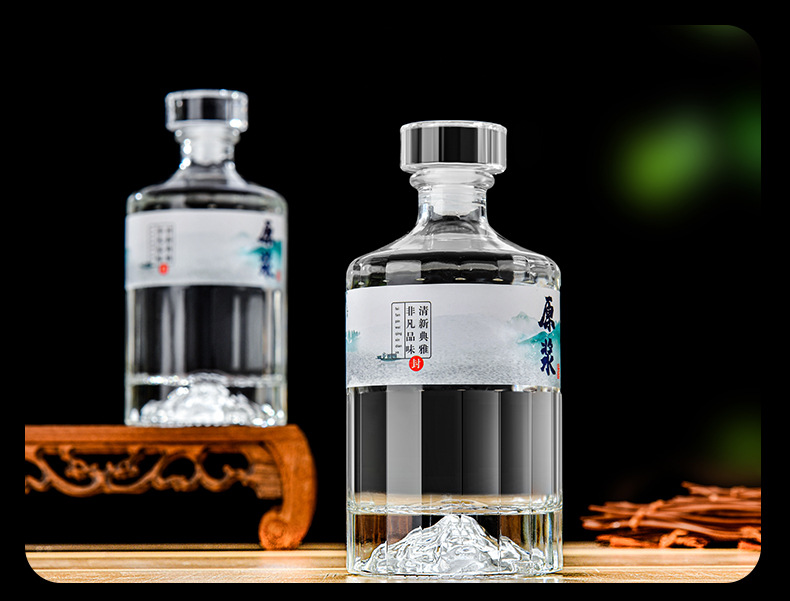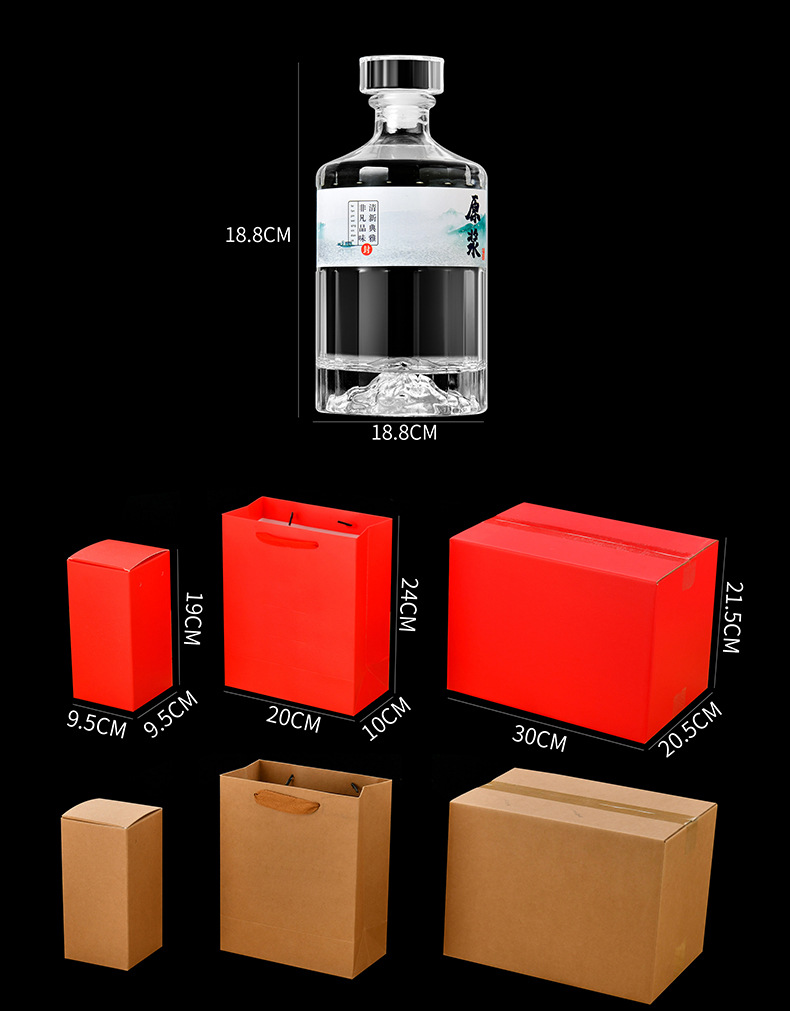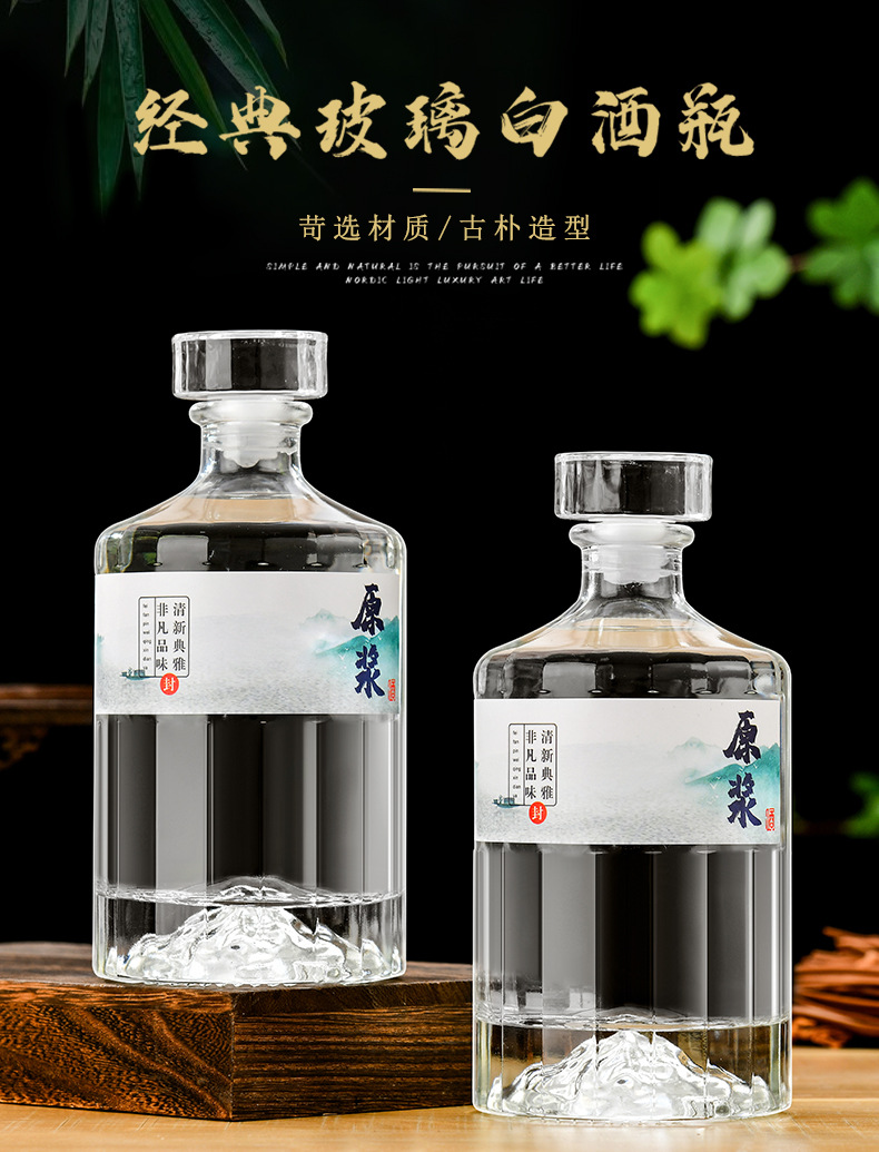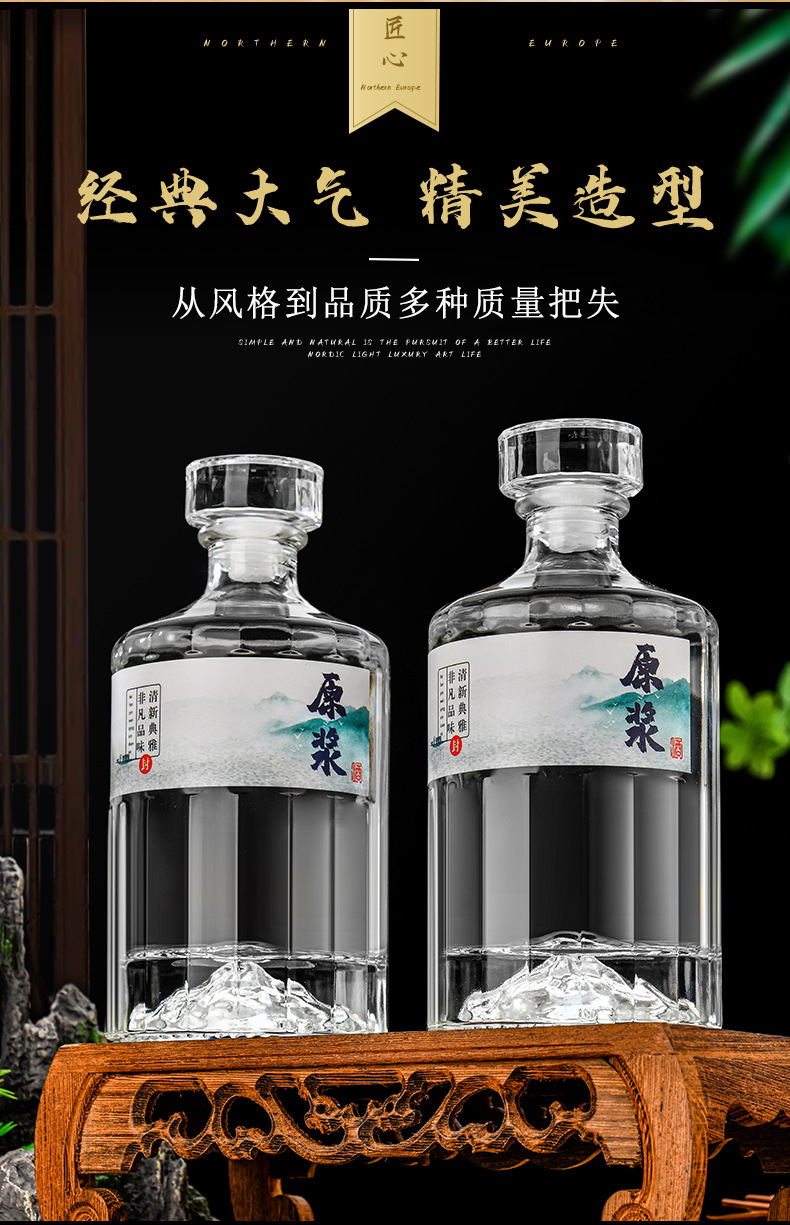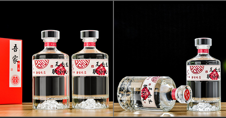 500ml開山酒瓶、クリスタルホワイト素材の白酒瓶、0.5kg個入り密封空酒瓶、自家製酒瓶、ラベル付きフルセット