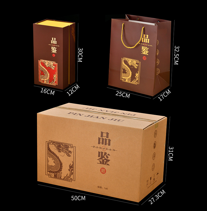 結婚式の空のワインボトル、結婚式の高級宴会用酒ボトル、結婚式の宴会用ガラスワインボトル、ラベル付きギフトボックスのフルセット