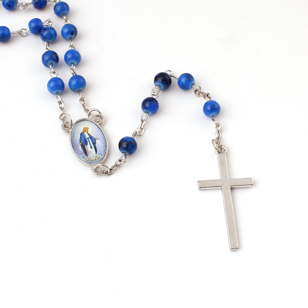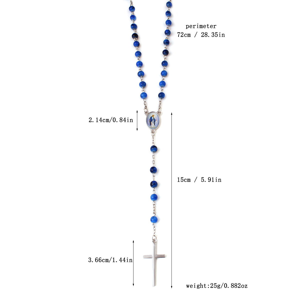 アマゾン越境販売 ブルークリスタルブルー斑点ビーズ数珠クロスペンダントネックレス 洗礼ジュエリー トレンド人気商品