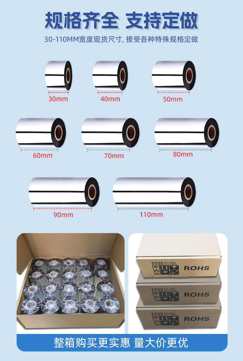 強化ワックスベース炭素テープ混合ベース炭素テープラベルリボン全樹脂バーコード印刷紙コート紙カーボンテープ