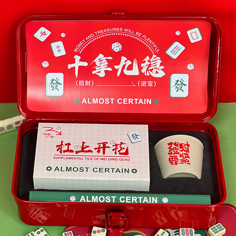 手搓麻将牌家用卡通大红色红色暴富麻将便携旅行麻将礼盒装