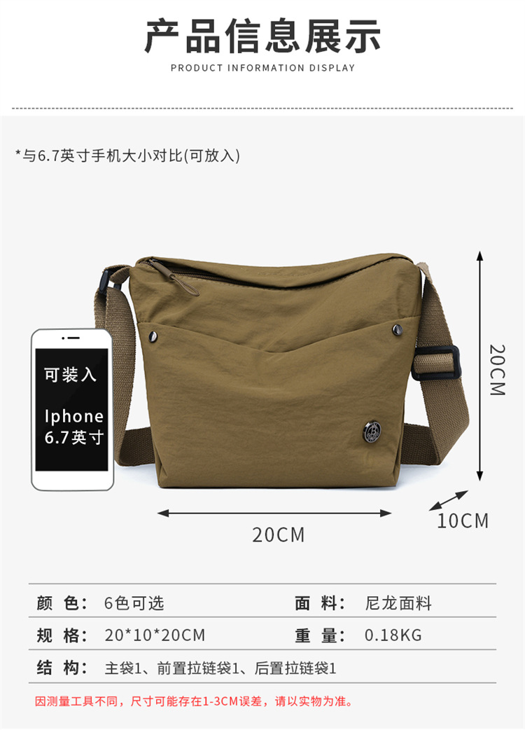 尼龙布包包女士高级感轻便单肩斜挎包2024新款跨境百搭休闲帆布包