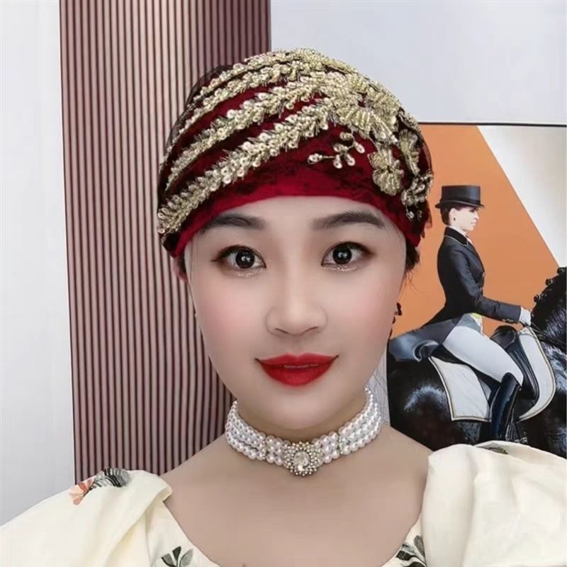 洋気刺繍は白髪の包頭帽子を隠します。夏のファッションレースの髪の帽子は女性の2023新型のスカーフの帽子です。
