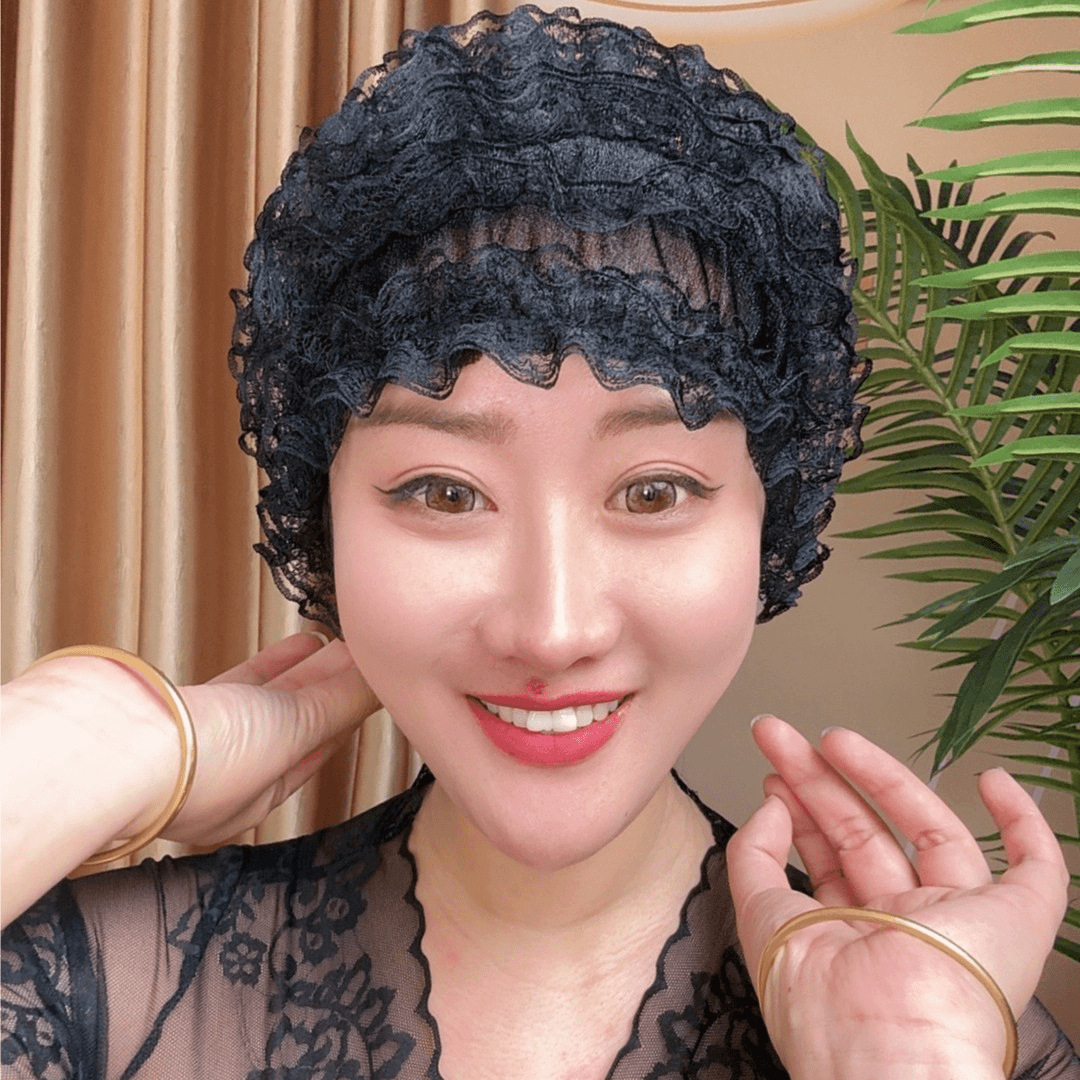 レースの網の紗は白髪の包頭帽子を隠します。
