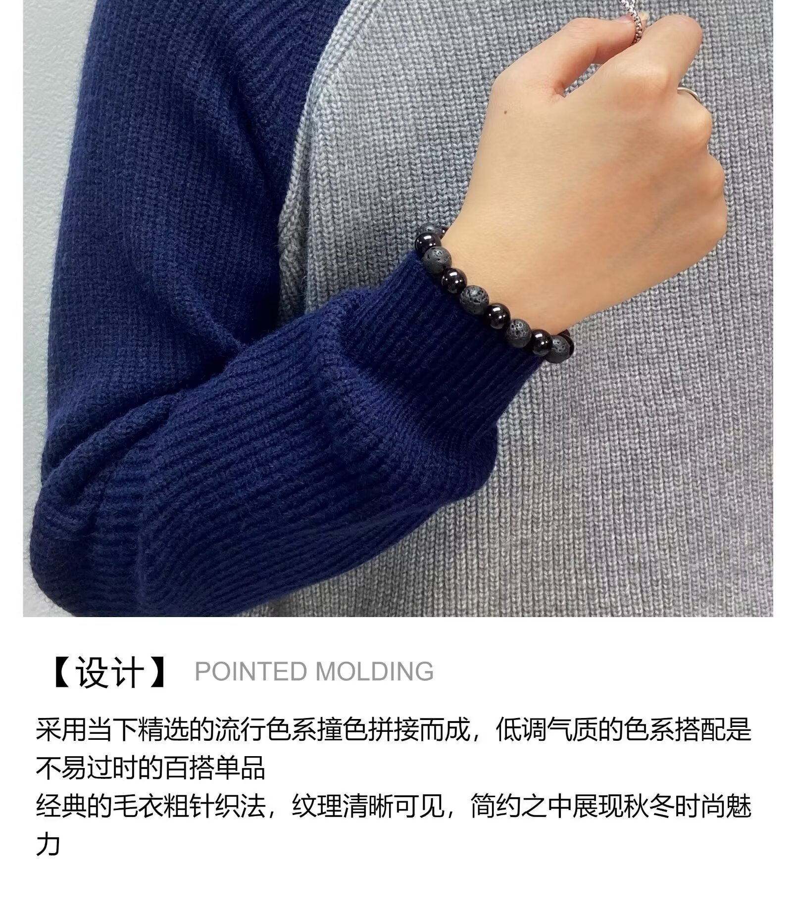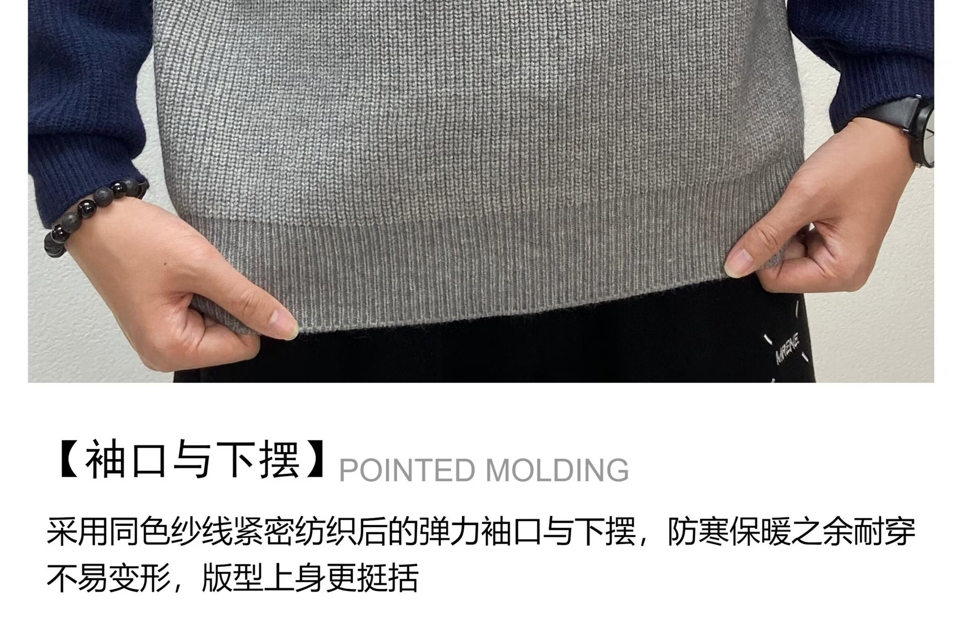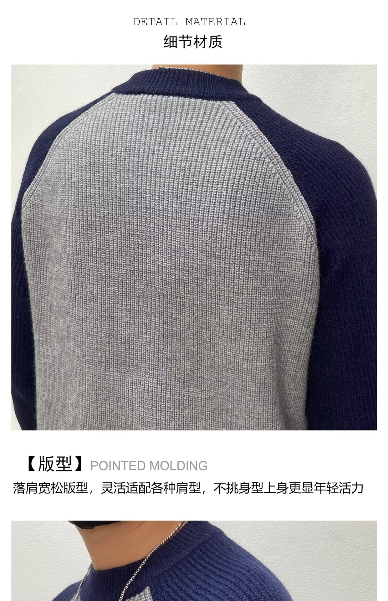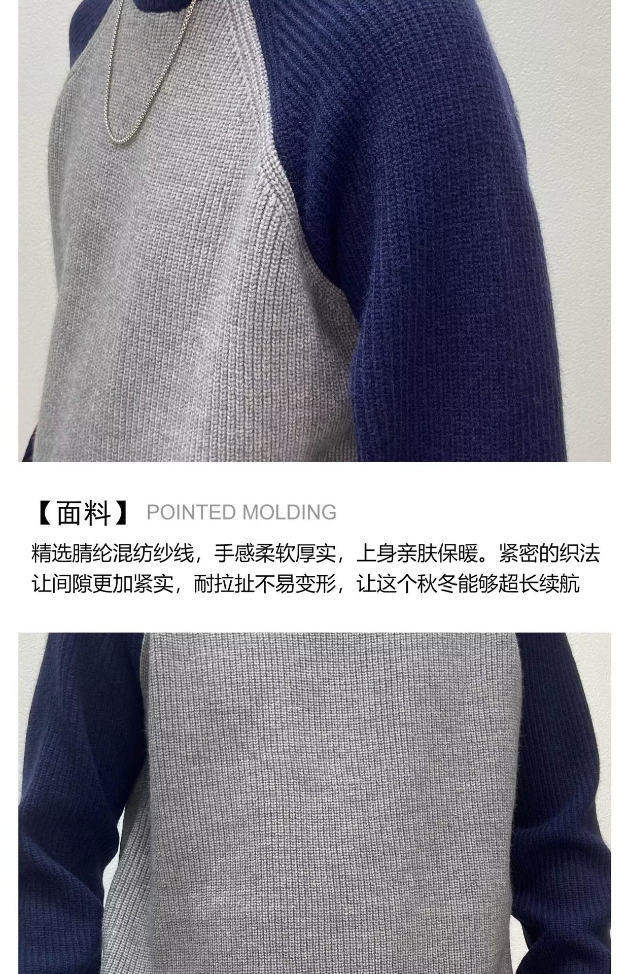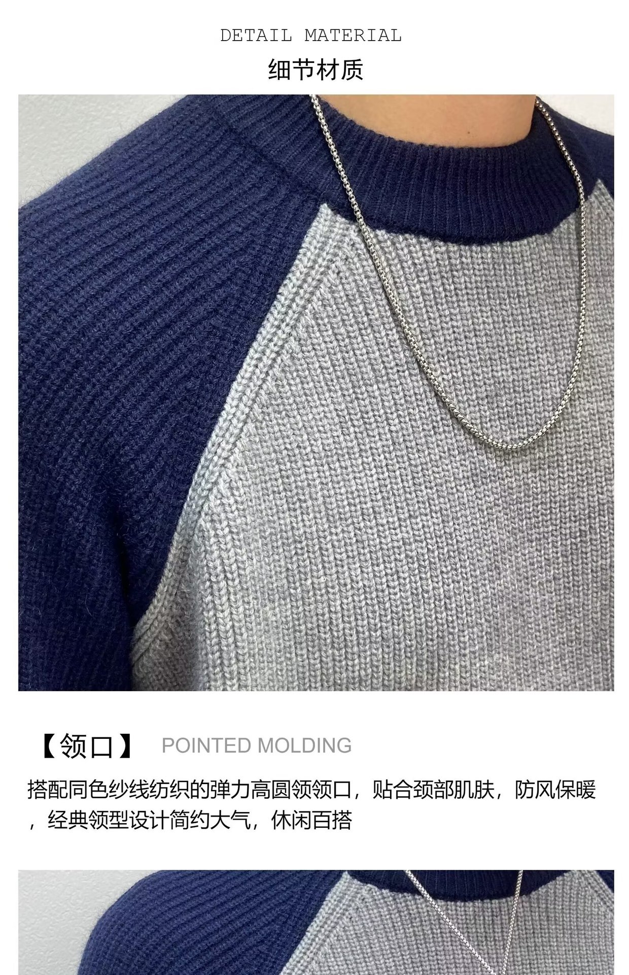 色合わせの肩袖のセーターの男性の2024秋冬の新型のカジュアルな丸首は底のニットの上着のファッションの札を打ちます。