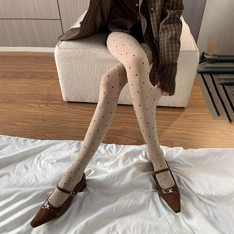 ゴマの灰色の波の点はズボンの靴下の春秋のビロードの愛のレギンスのファッションのシンプルな職場の女性の光の足の神器をつなぎます。