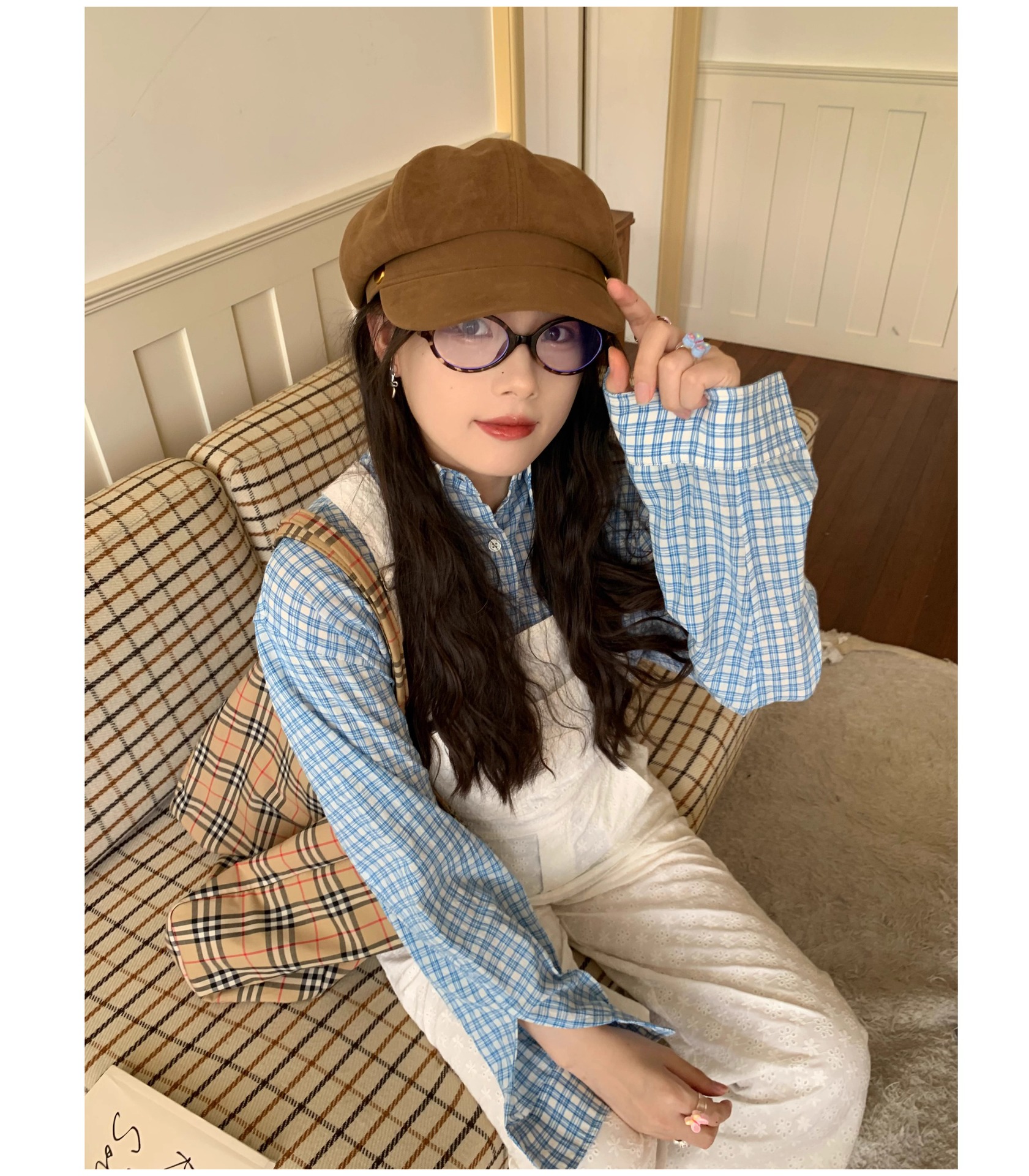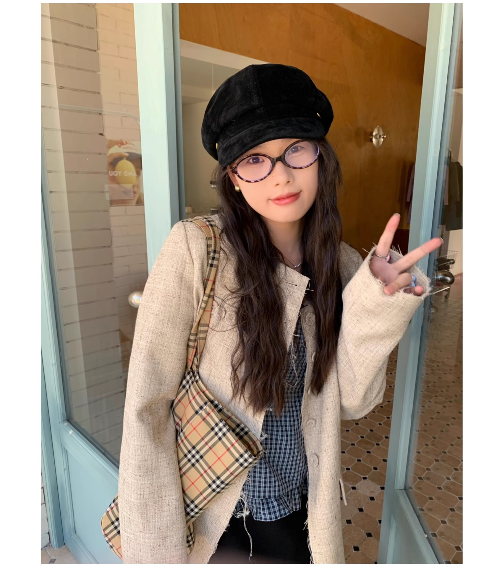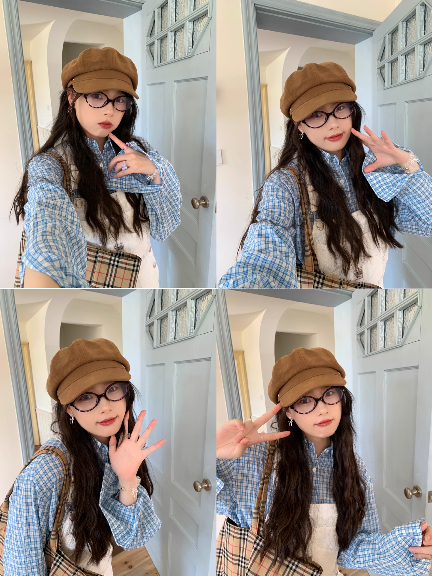 复古麂皮绒褶皱平顶鸭舌帽女大头围显脸小百搭新款报童帽出游通勤