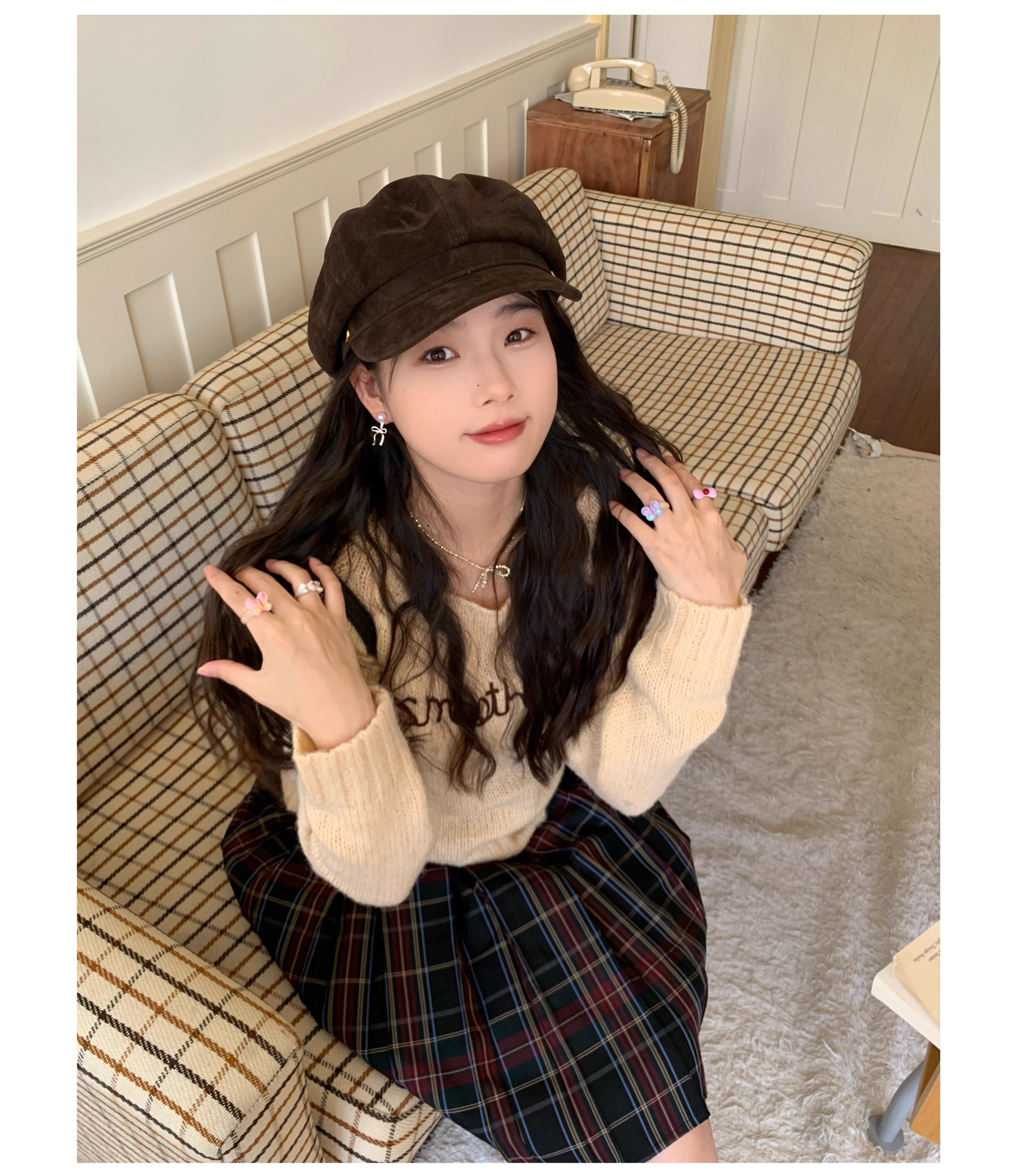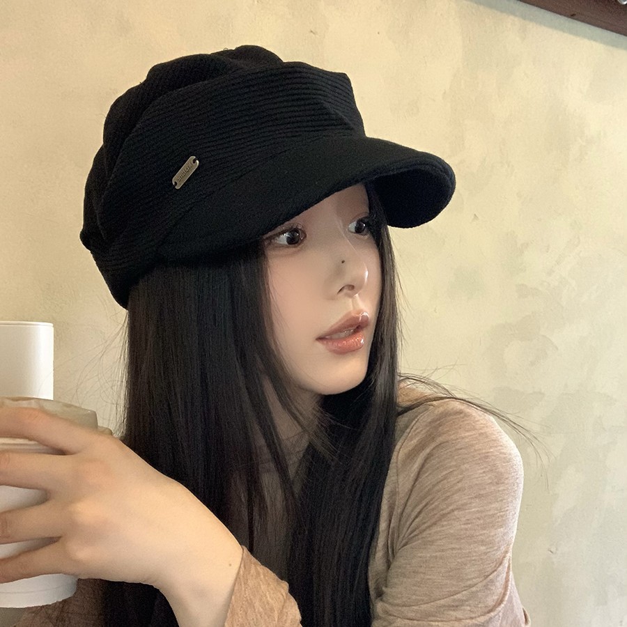 2025新款~日系小铁标灯芯绒鸭嘴贝雷帽女秋冬百搭显脸小八角帽子
