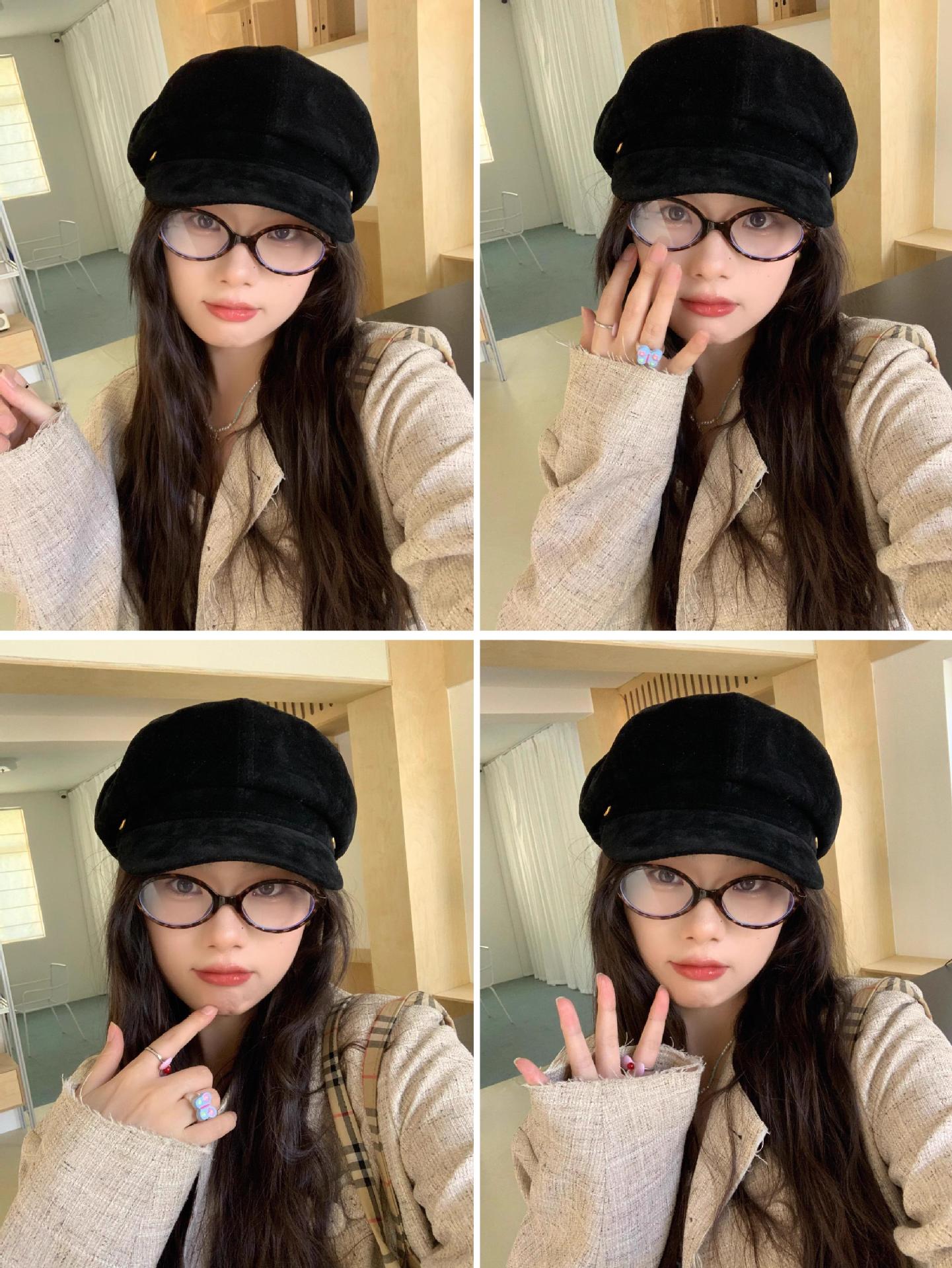 日系复古文艺风黑色鸭舌贝雷帽女休闲百搭气质显脸小八角云朵帽子
