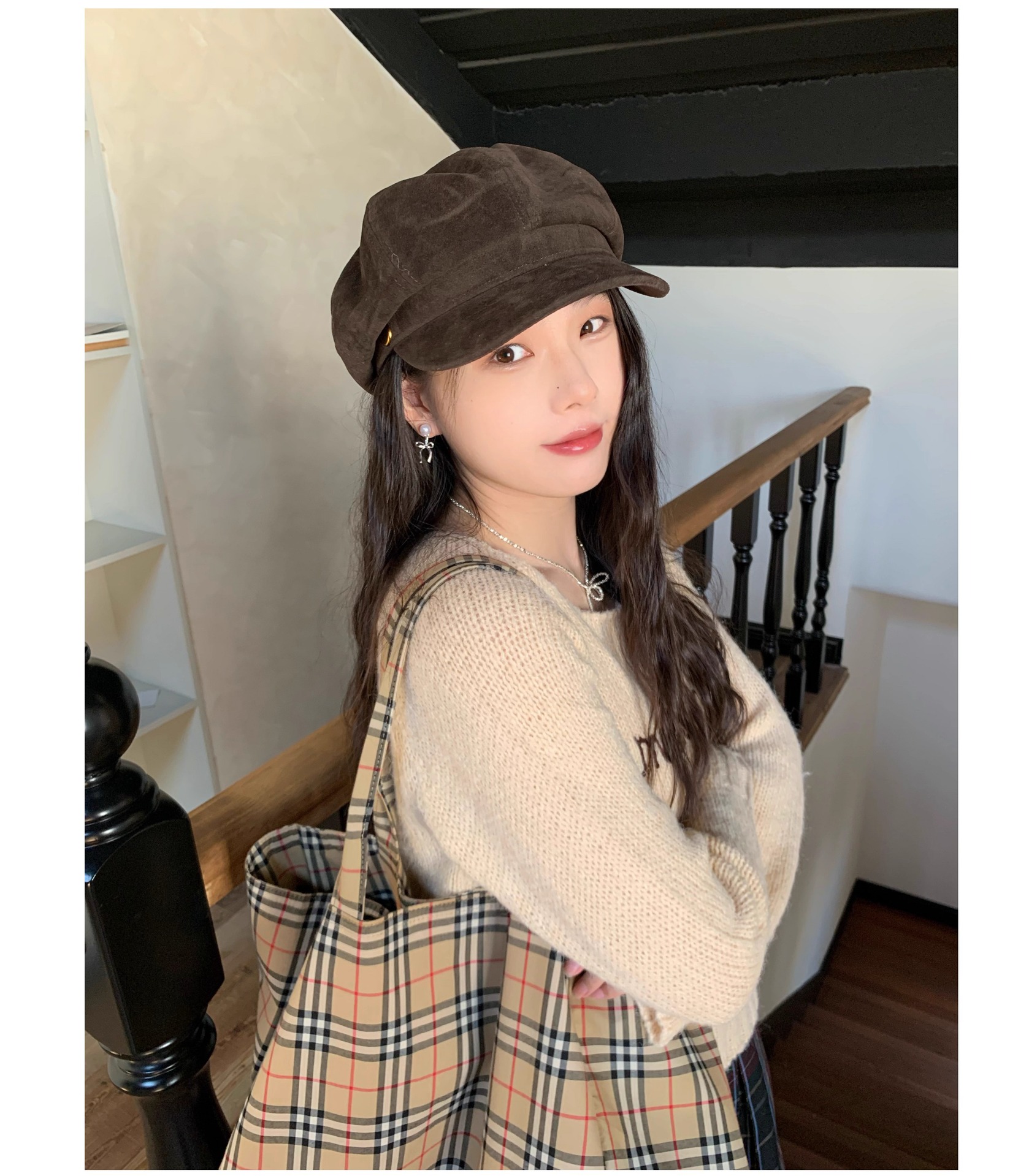 高级感麂皮绒八角帽子女秋冬2025新款气质报童帽时尚显脸小画家帽
