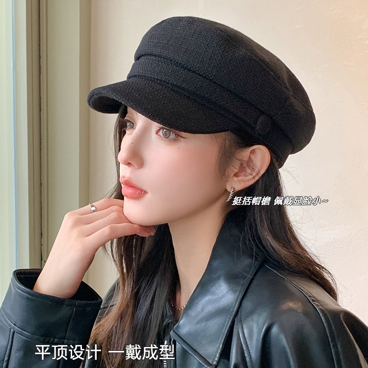 韩系纯色气质显脸小八角帽女秋冬百搭新款甜酷灰色时尚鸭舌贝雷帽